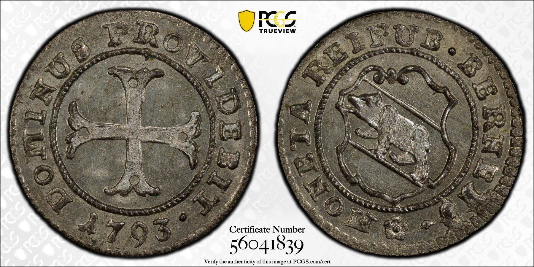 SWITZERLAND: BERN: Canton, BI kreuzer, 1793, PCGS MS66