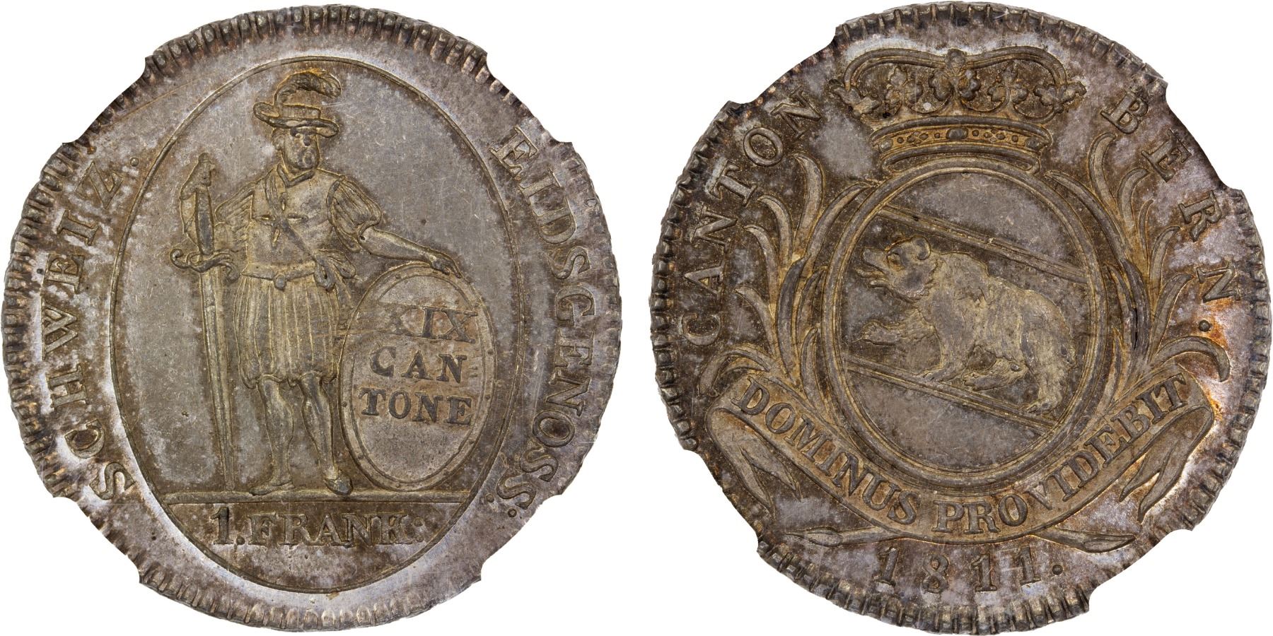 SWITZERLAND: BERN: Republic, AR franken, 1811, NGC MS65