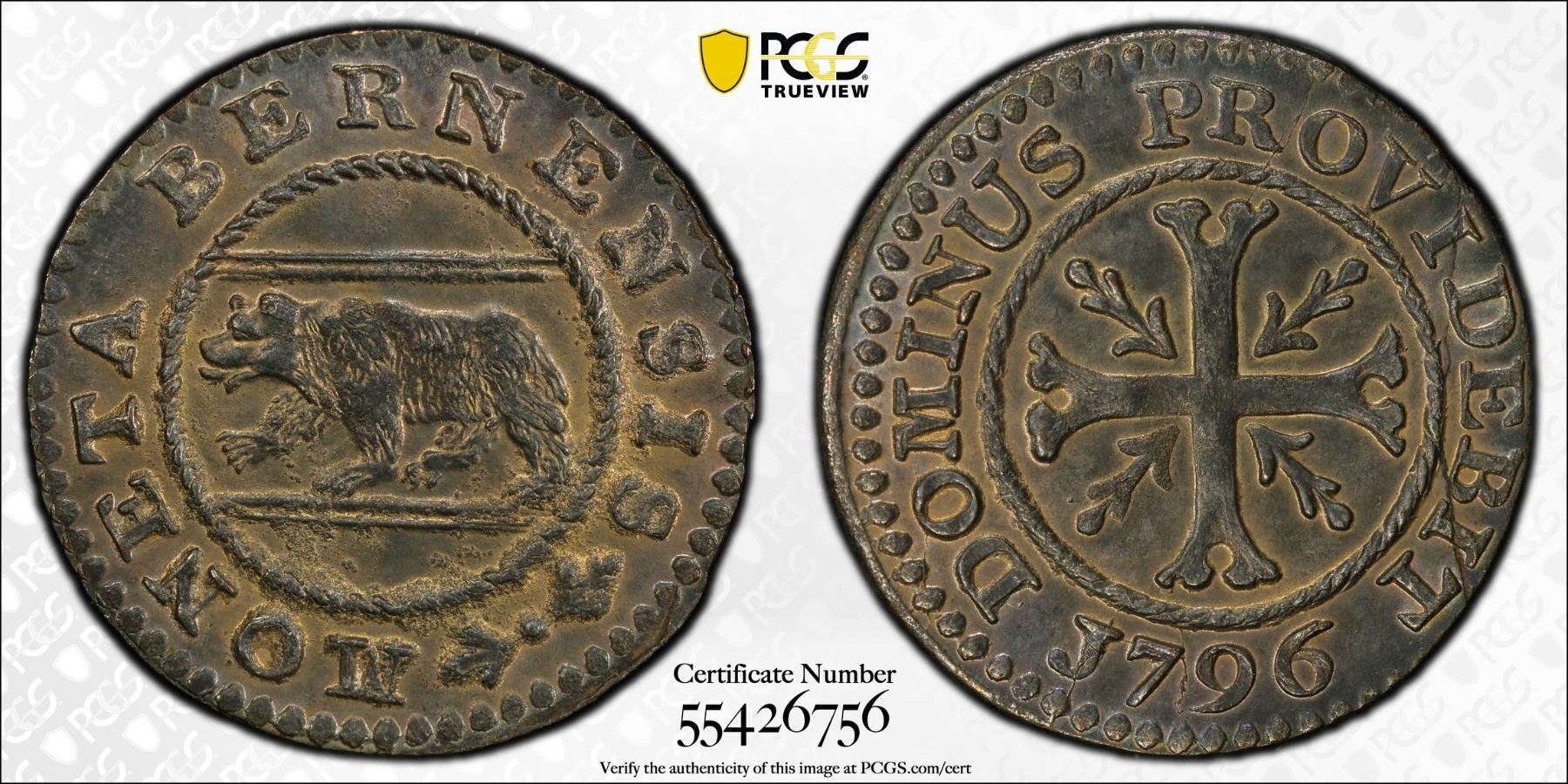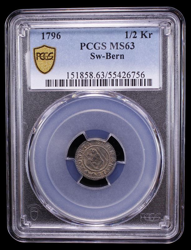 SWITZERLAND: BERN: Republic, BI 1/2 kreuzer, 1796, PCGS MS63
