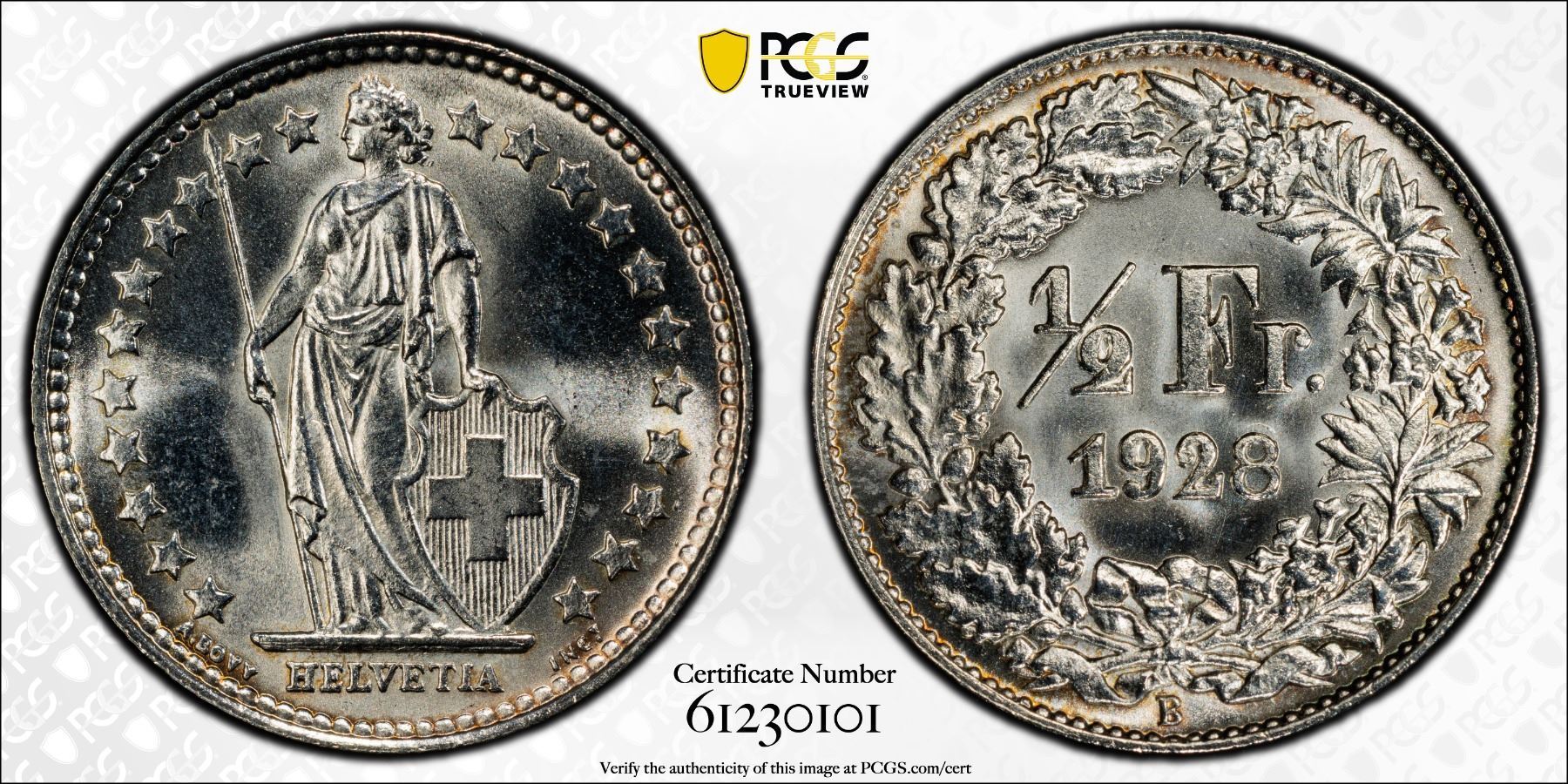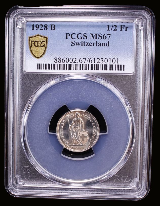 SWITZERLAND: Confederation, AR 1/2 franc, 1928-B, PCGS MS67