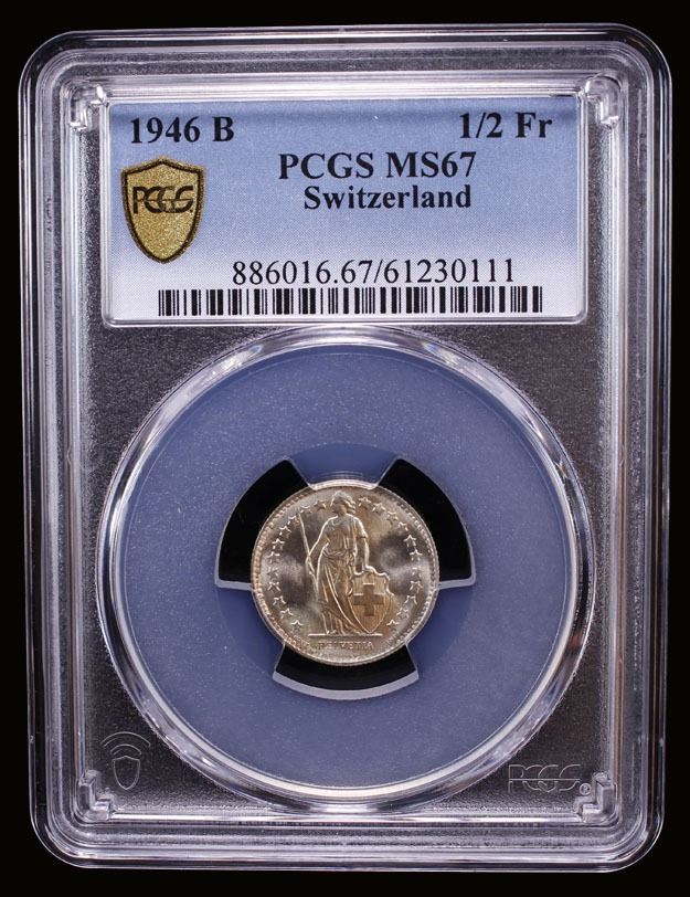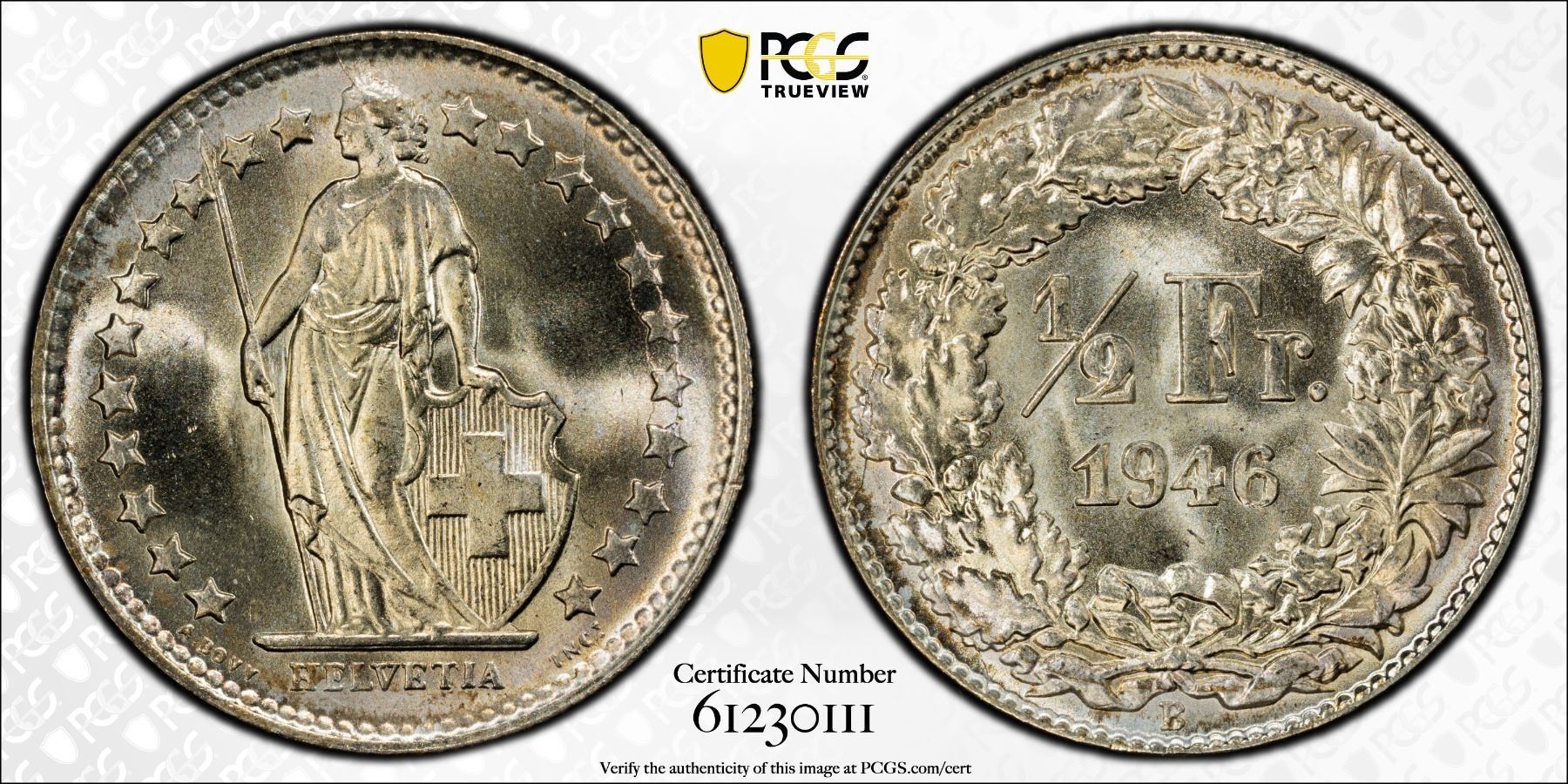 SWITZERLAND: Confederation, AR 1/2 franc, 1946-B, PCGS MS67