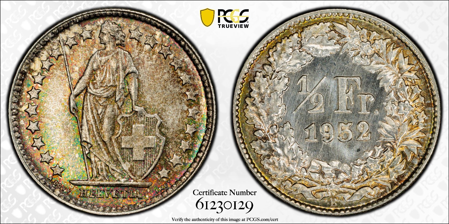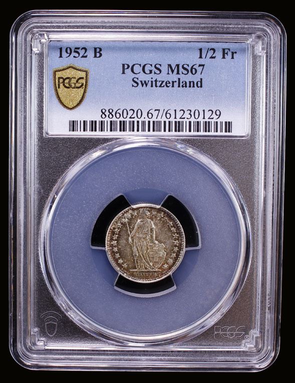SWITZERLAND: Confederation, AR 1/2 franc, 1952-B, PCGS MS67