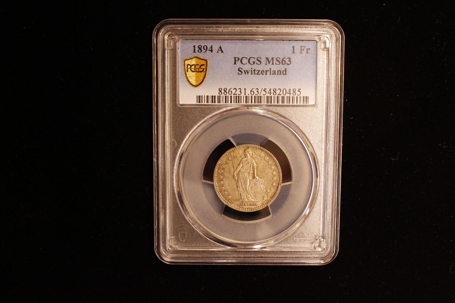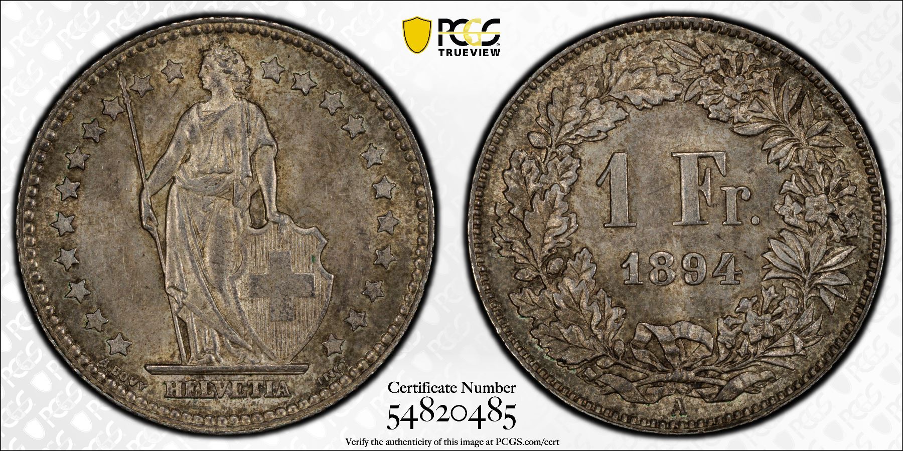 SWITZERLAND: Confederation, AR franc, 1894, KM-24, a lovely example, PCGS graded MS63.