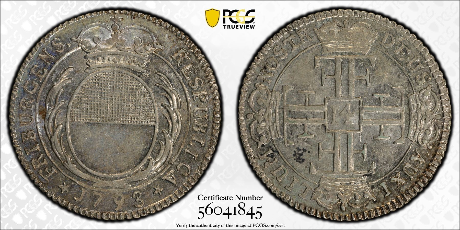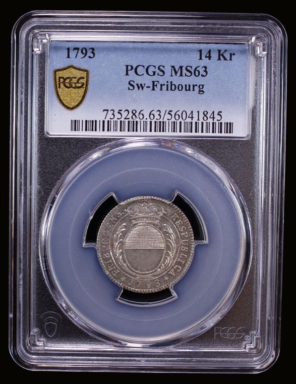 SWITZERLAND: FREIBURG: Canton, AR 14 kreuzer, 1793, PCGS MS63