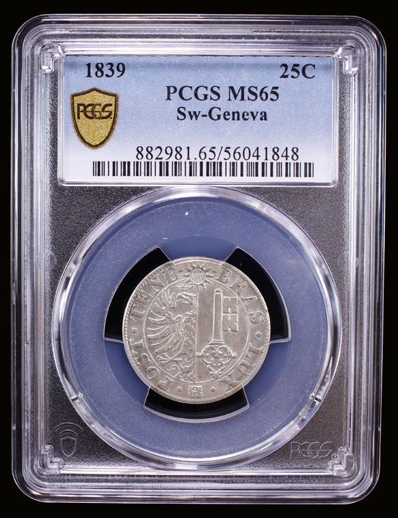 GENEVA: Canton, BI 25 centimes, 1839, KM-129, C-68, a superb example, PCGS graded MS65.