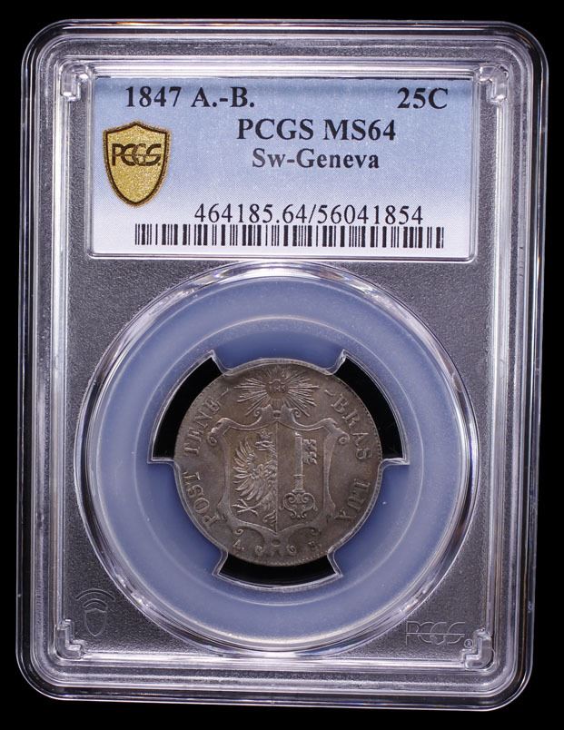 GENEVA: Canton, BI 25 centimes, 1847, KM-135, C-71, a wonderful example, PCGS graded MS64.