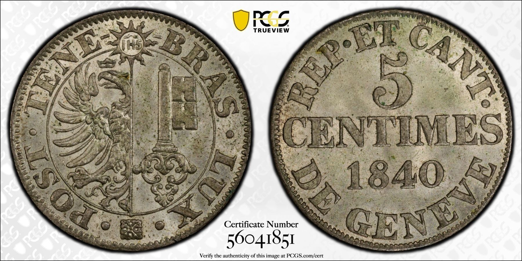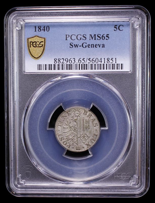 GENEVA: Canton, BI 5 centimes, 1840, KM-131, C-66, a superb example, PCGS graded MS65.