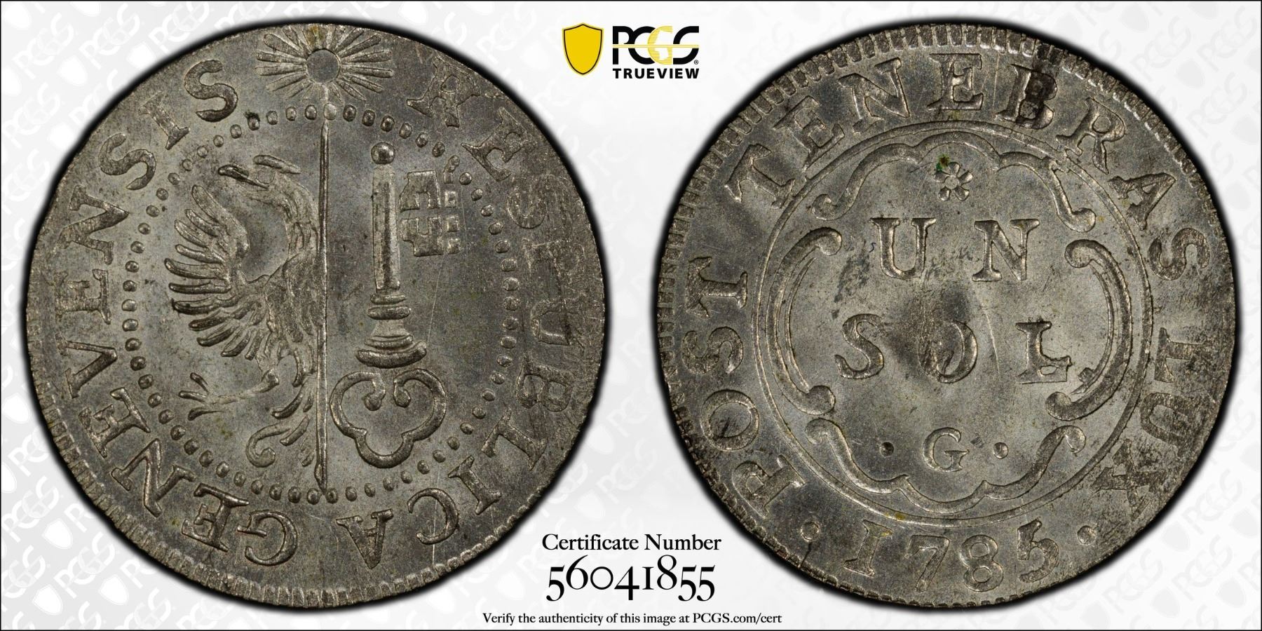 SWITZERLAND: GENEVA: Republic, BI sol, 1785-G, PCGS MS65