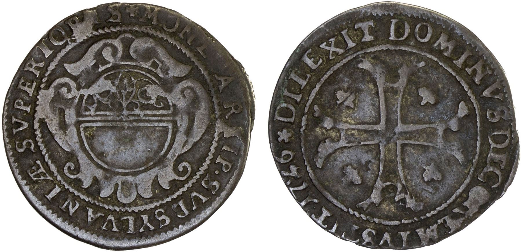 OBWALDEN: Canton, BI 1/2 batzen, 1726, KM-15, tiny dig near center obverse, toned, VG to Fine.