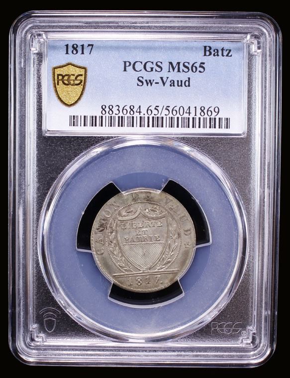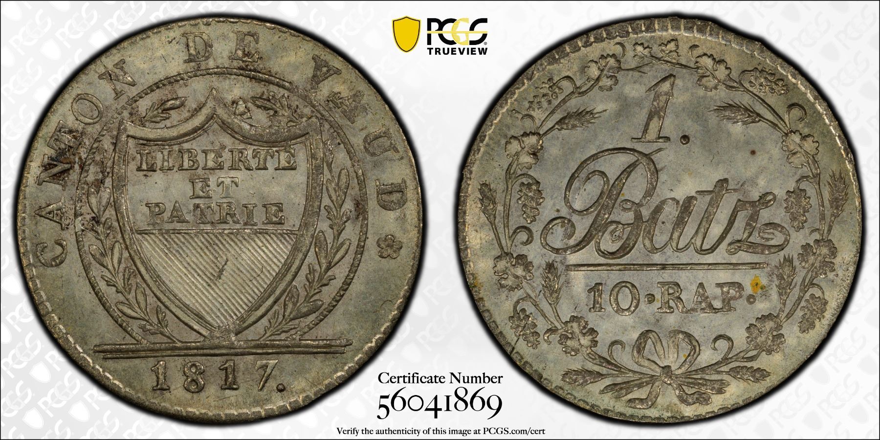 SWITZERLAND: VAUD: Canton, BI batzen, 1817, PCGS MS65