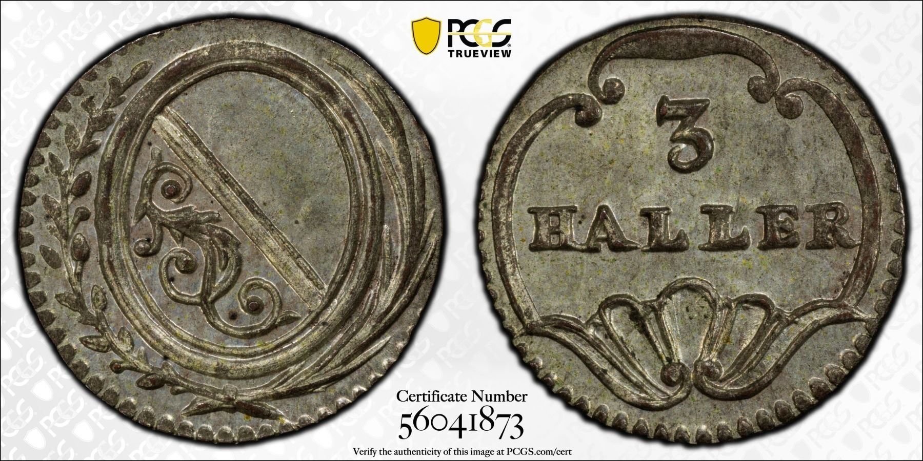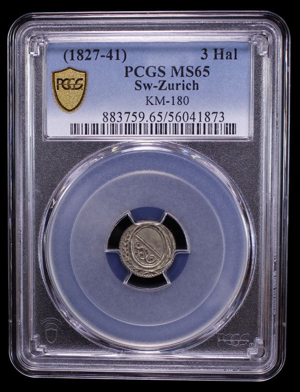 SWITZERLAND: ZÜRICH: Canton, BI 3 haller, ND (1827-41), PCGS MS65
