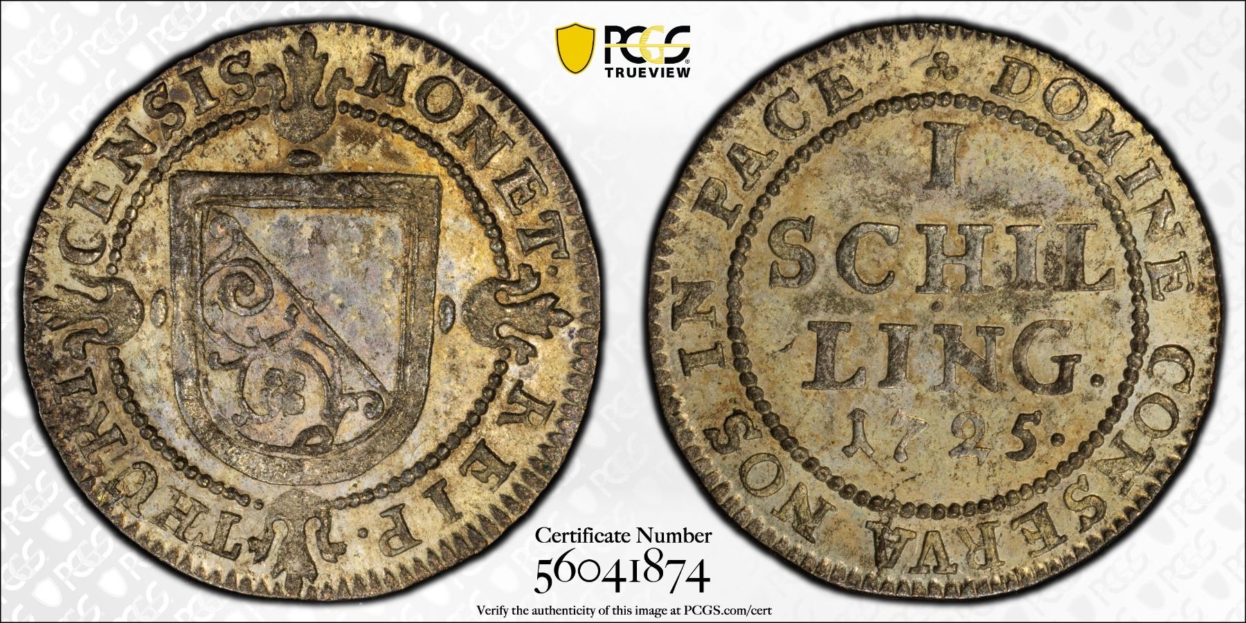 SWITZERLAND: ZÜRICH: Canton, BI schilling, 1725, PCGS MS65