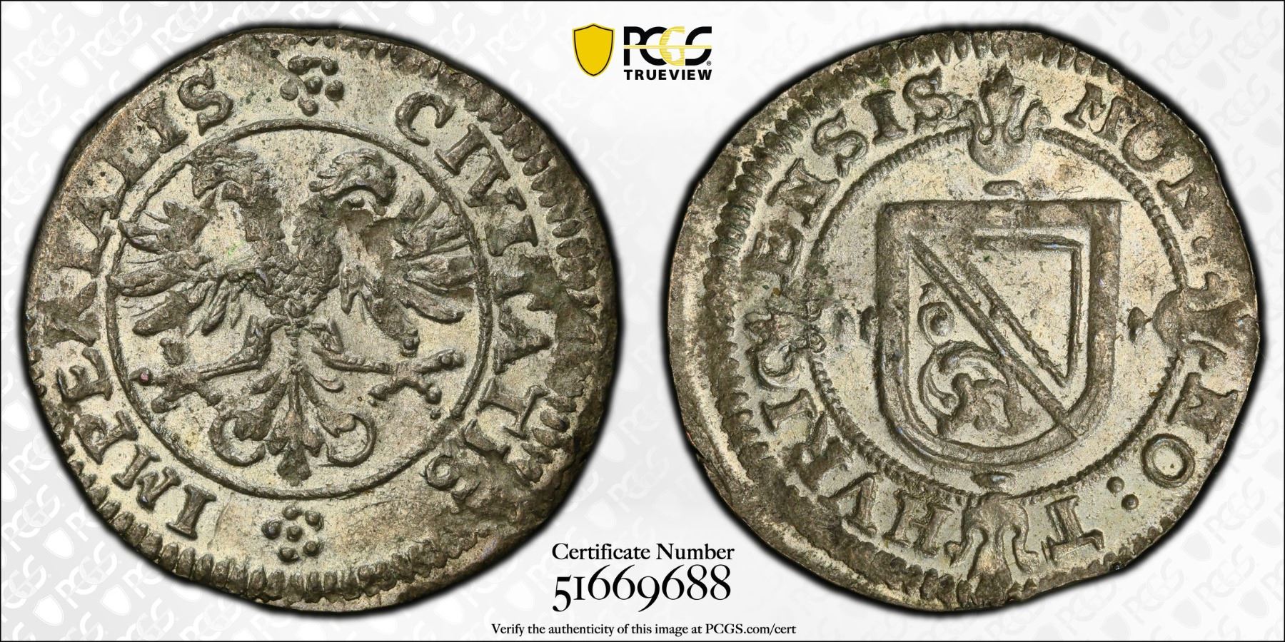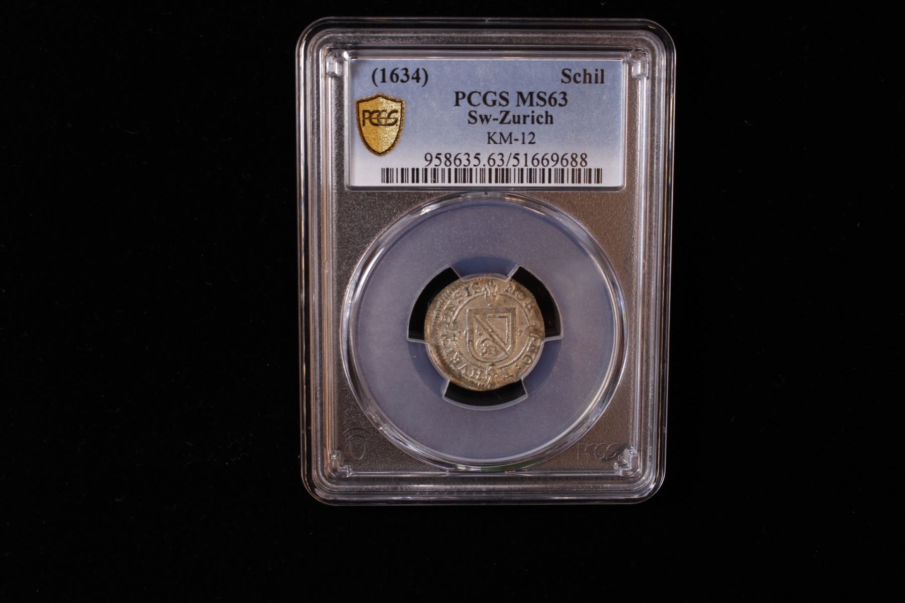 SWITZERLAND: ZÜRICH: Free Imperial City, AR schilling, ND (1634), KM-12, HMZ-1155c, a lovely mint state example! PCGS graded MS63.