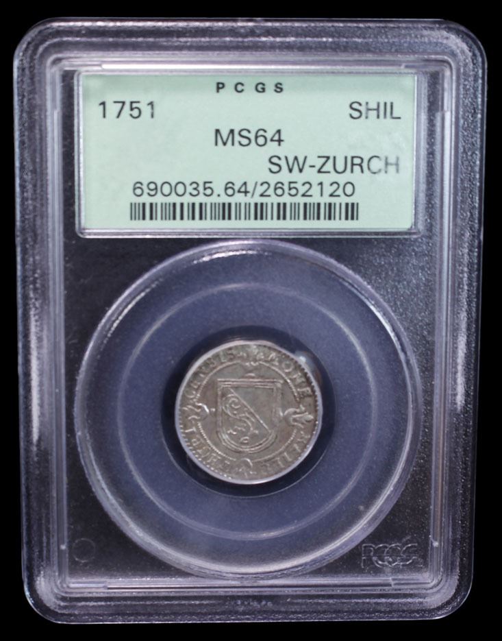 SWITZERLAND: ZÜRICH: Republic, BI schilling, 1751, PCGS MS64