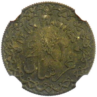 SYRIA: 2 piastres, 1926, KM-69, lovely deep tone, a superb example! NGC graded MS65.
