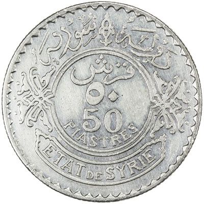 SYRIA: AR 50 piastres, 1937(a), KM-74, lightly hairlined, EF to About Unc.