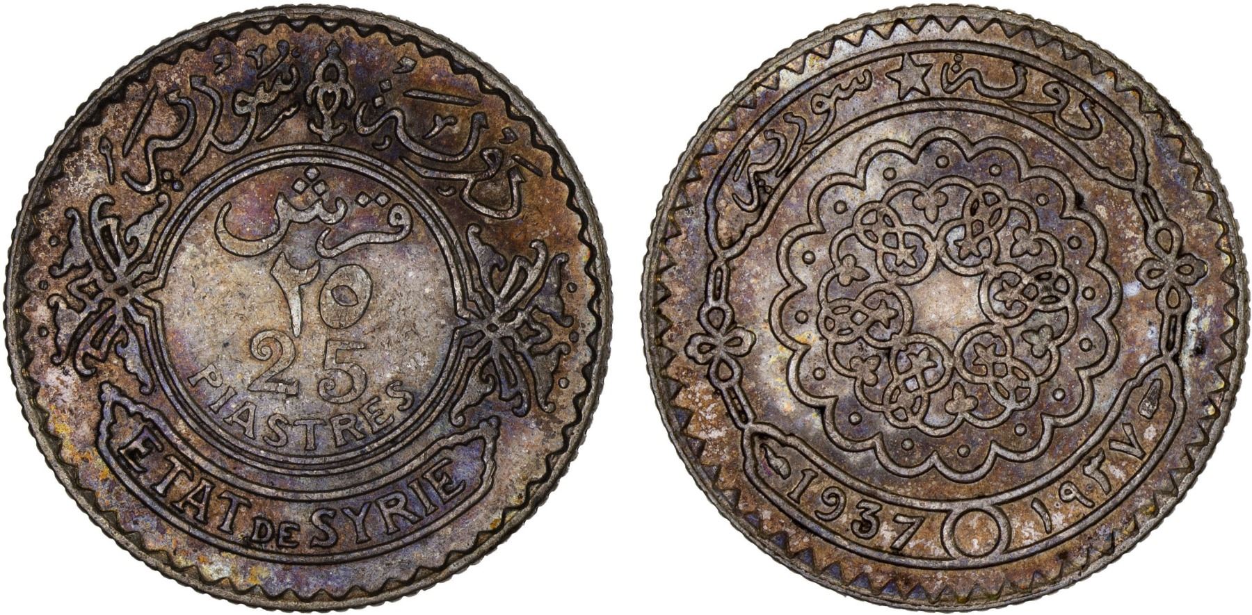 SYRIA: French Protectorate, AR 25 piastres, Paris, 1937, XF-AU