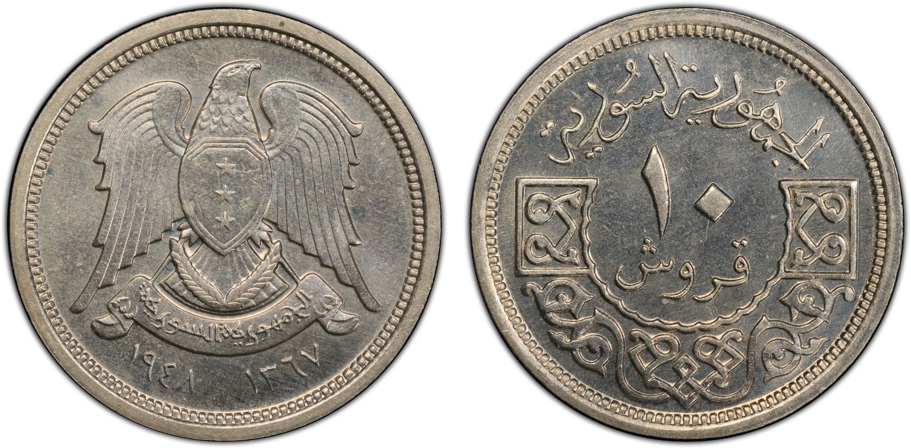 SYRIA: Republic, 10 piastres, 1948/AH1367, PCGS Specimen 67