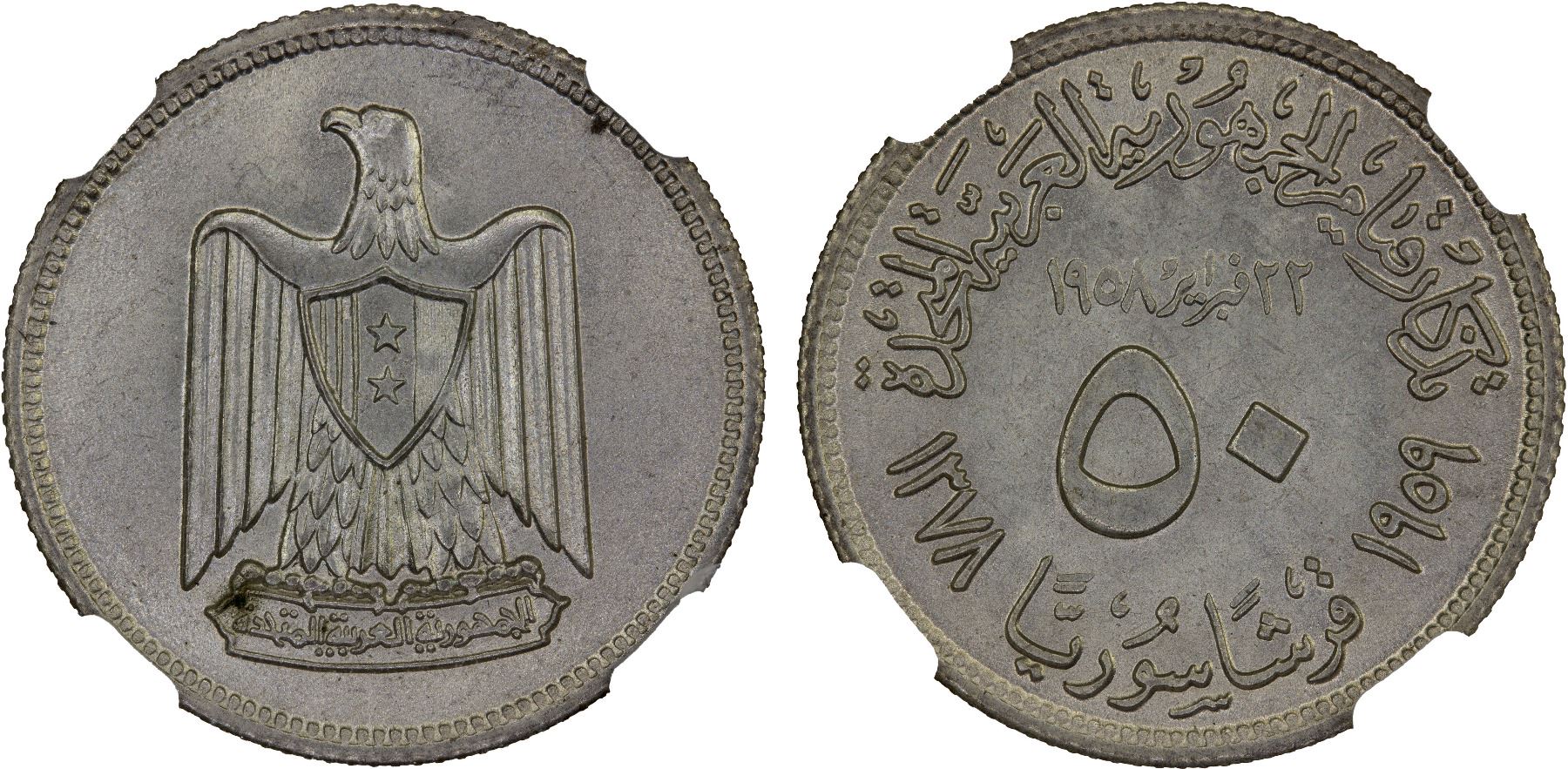 SYRIA: Republic, AR 50 piastres, 1959/AH1378, NGC MS67