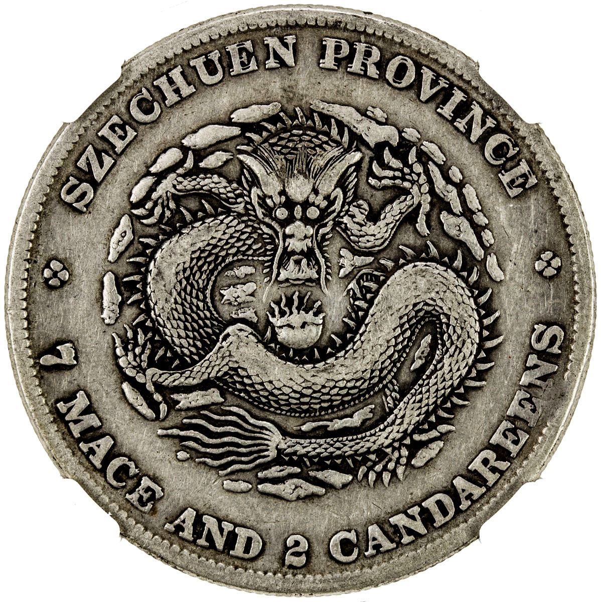 SZECHUAN: Kuang Hsu, 1875-1908, AR dollar, ND (1901-08), Y-328, L&M-345, narrow face dragon type, doubled die variety, NGC graded VF35.