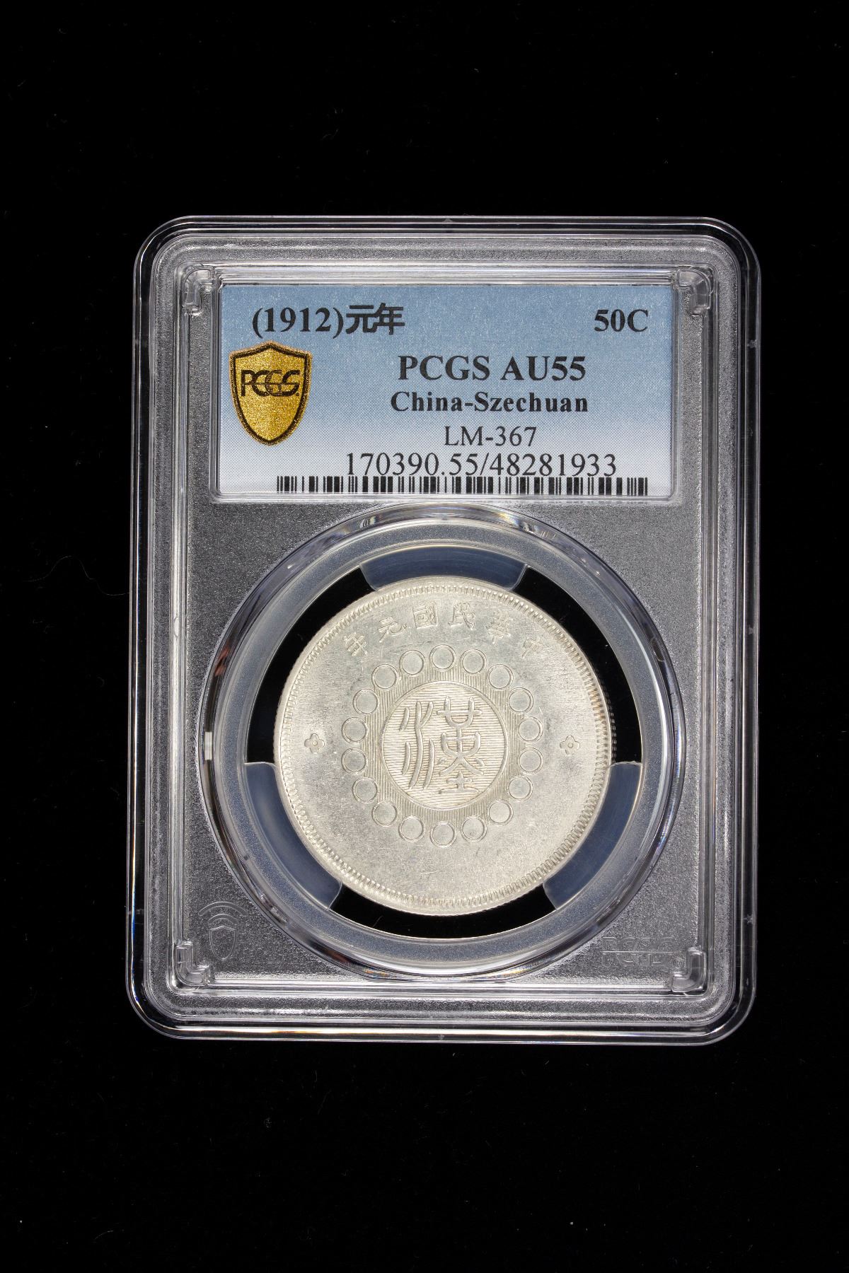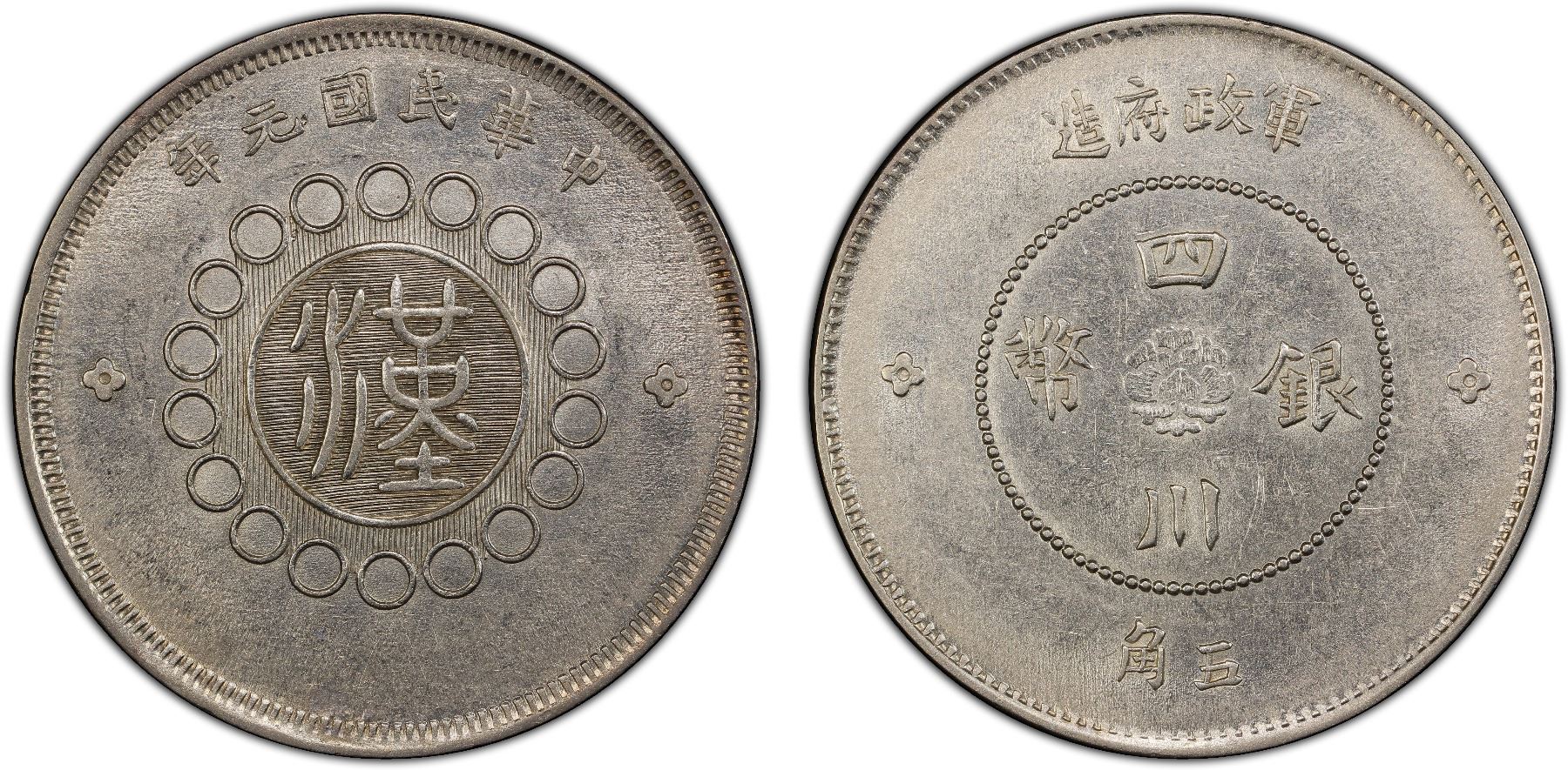 SZECHUAN: Republic, AR dollar, year 1 (1912), Y-455, L&M-367, Military Government issue, seal script character han at center, PCGS graded AU55, ex Almer H. Orr III Collection.