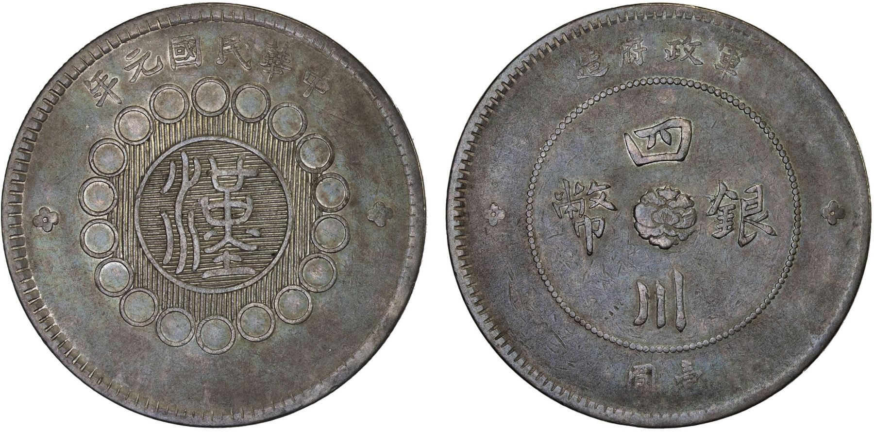 SZECHUAN: Republic, AR dollar, year 1 (1912), Y-456, L&M-366, Military Government issue, seal script character han at center, variety with long stroke in the radical jin, two-year type, VF, ex Frank S. Robinson Collection.