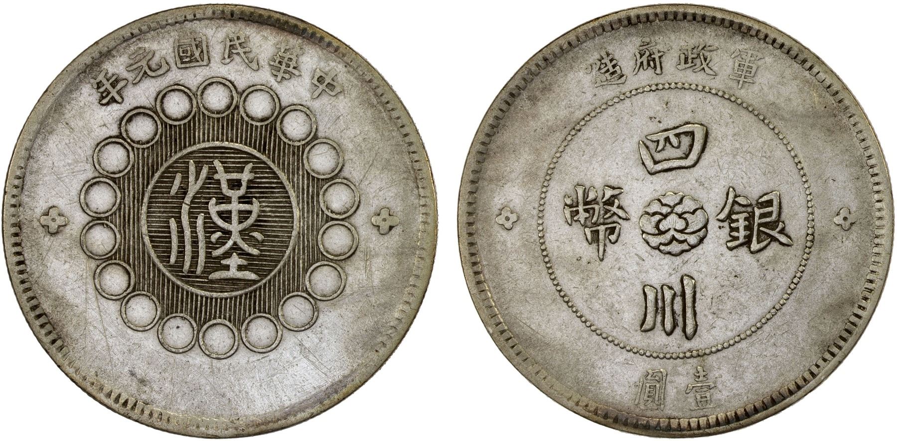SZECHUAN: Republic, AR dollar, year 1 (1912), Y-456, some faint obverse scratches, lightly cleaned, two-year type, XF.