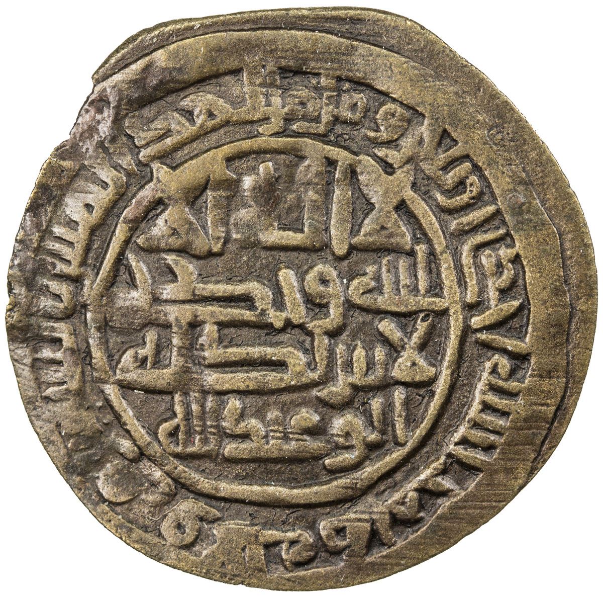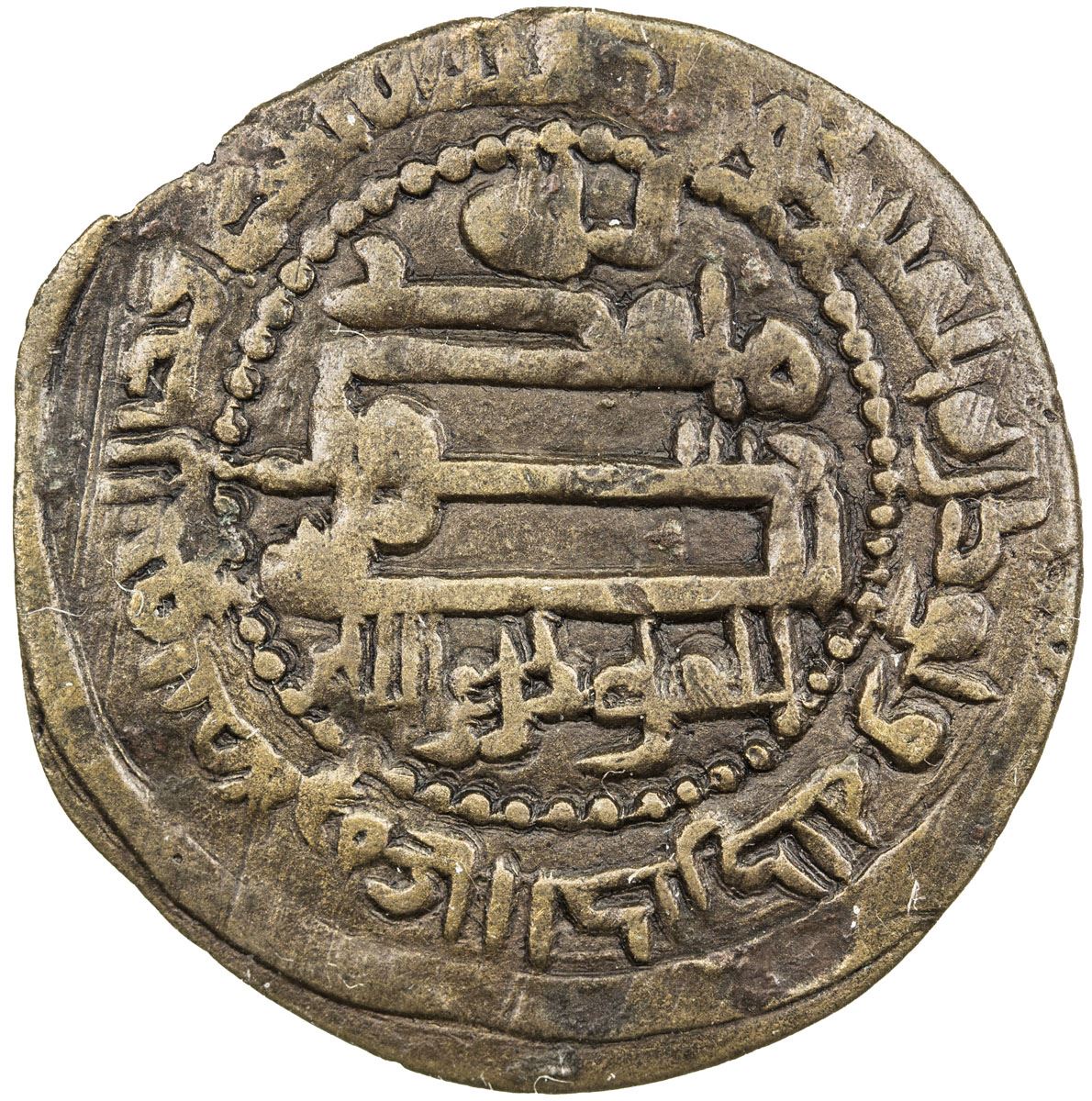 TAHIRID: Tahir II, 845-862, AE fals (2.90g), al-Shash, AH241, A-B1395.2, Zeno-46871 (this piece), citing both Tahir and the governor Yahya along with mint & date in the obverse margin, plus the caliph al-Mutawakkil beneath the reverse and the caliphate heir-apparent Abu 'Abd Allah beneath the obverse field, excellent strike, choice VF, S.