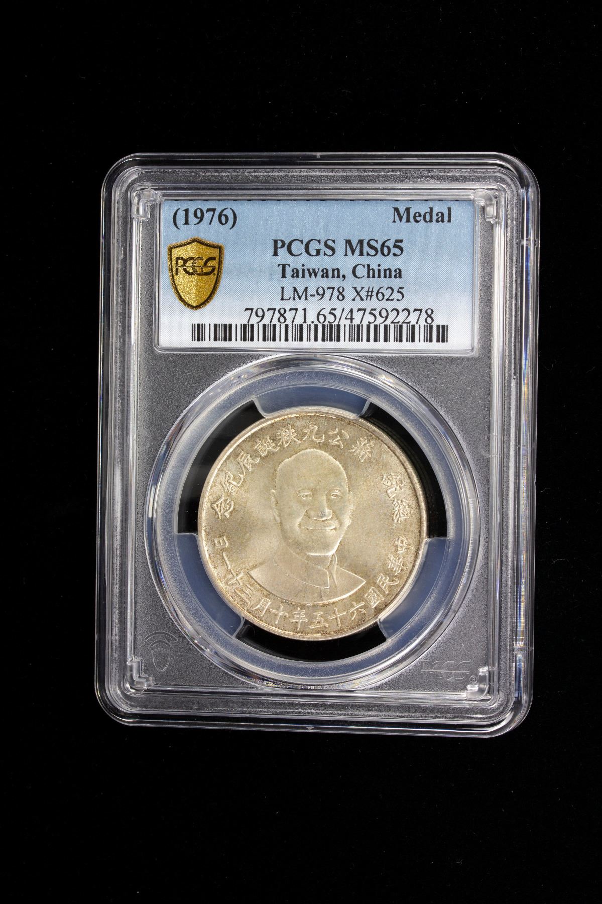 TAIWAN: AR medallic 2000 yuan, year 65 (1976), KM-X625, L&M-978, 90th Anniversary of the Birth of Chiang Kai-shek, PCGS graded MS65.