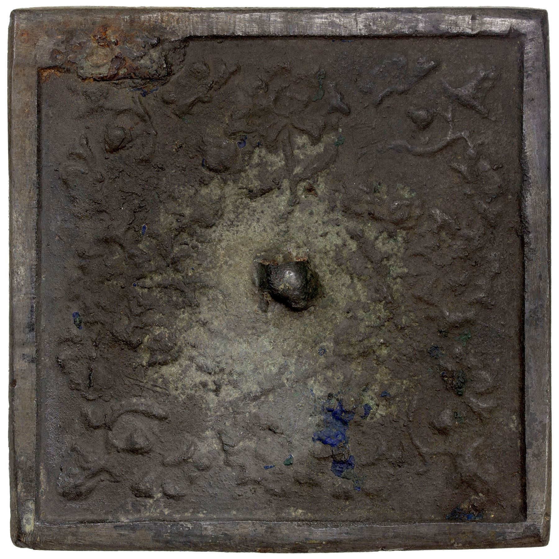 TANG: AE mirror (160g), 102mm, floral patterns on face with central hanger, polished mirror surface on back, encrusted, VF.