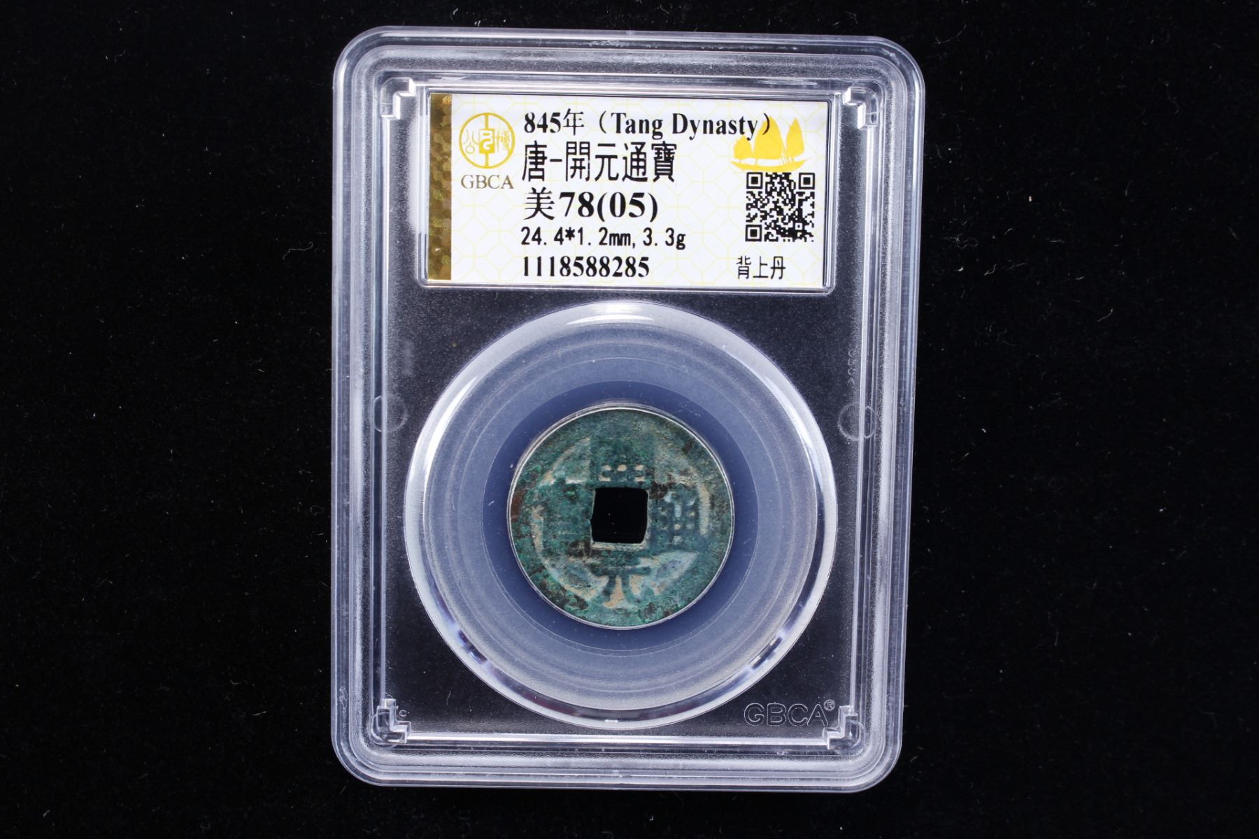 TANG: Kai Yuan, 845-846, AE cash (3.3g), Dan Prefecture, Shaanxi Province, H-14.51, graded 78(05) by GBCA Grading Company, natural flan crack, Fine, ex Dr. Dirk Löer Collection.