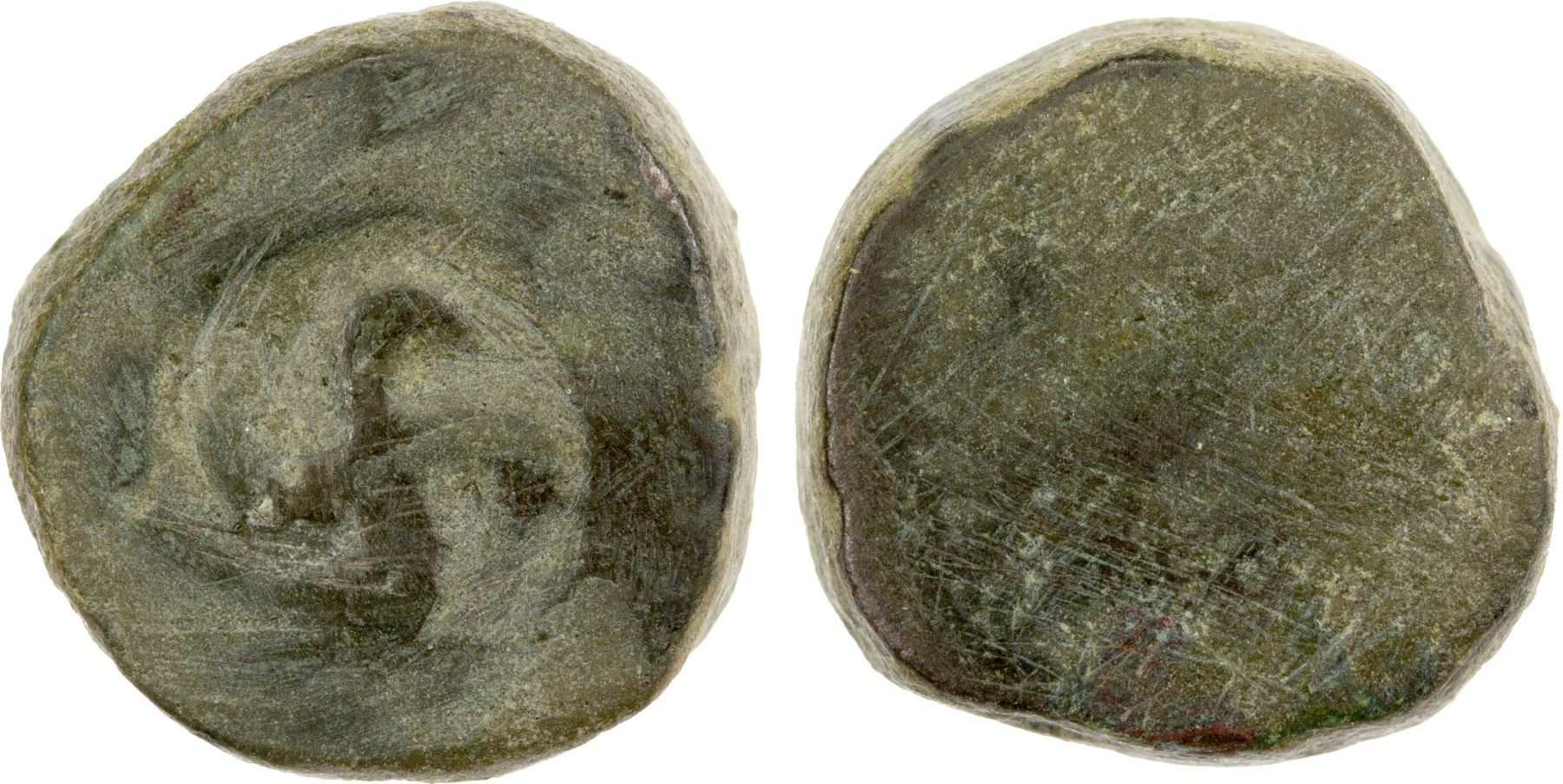 TAXILA: Anonymous, ca. 2nd century BC, thick AE unit (5.56g), Pieper-1452, swastika only, turning right, VF.