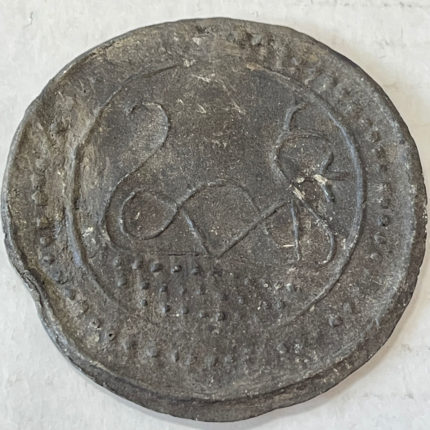 TENASSERIM-PEGU: Anonymous, 17th-18th century, large tin coin, cast (19.65g), Robinson-Plate 10.2/10.4, 59.5mm; stylized image of the "dragon on sea", minimal "head" and "tail", with the waves portrayed as dots (27 in three lines) // 3-line Burmese legend; 2 small casting flaws, bold casting, light weight for this type, EF. Although this is a relatively available Tenasserim large coin, it comes in a bewildering variation of the quantity and arrangement of the dots representing the ocean waves.