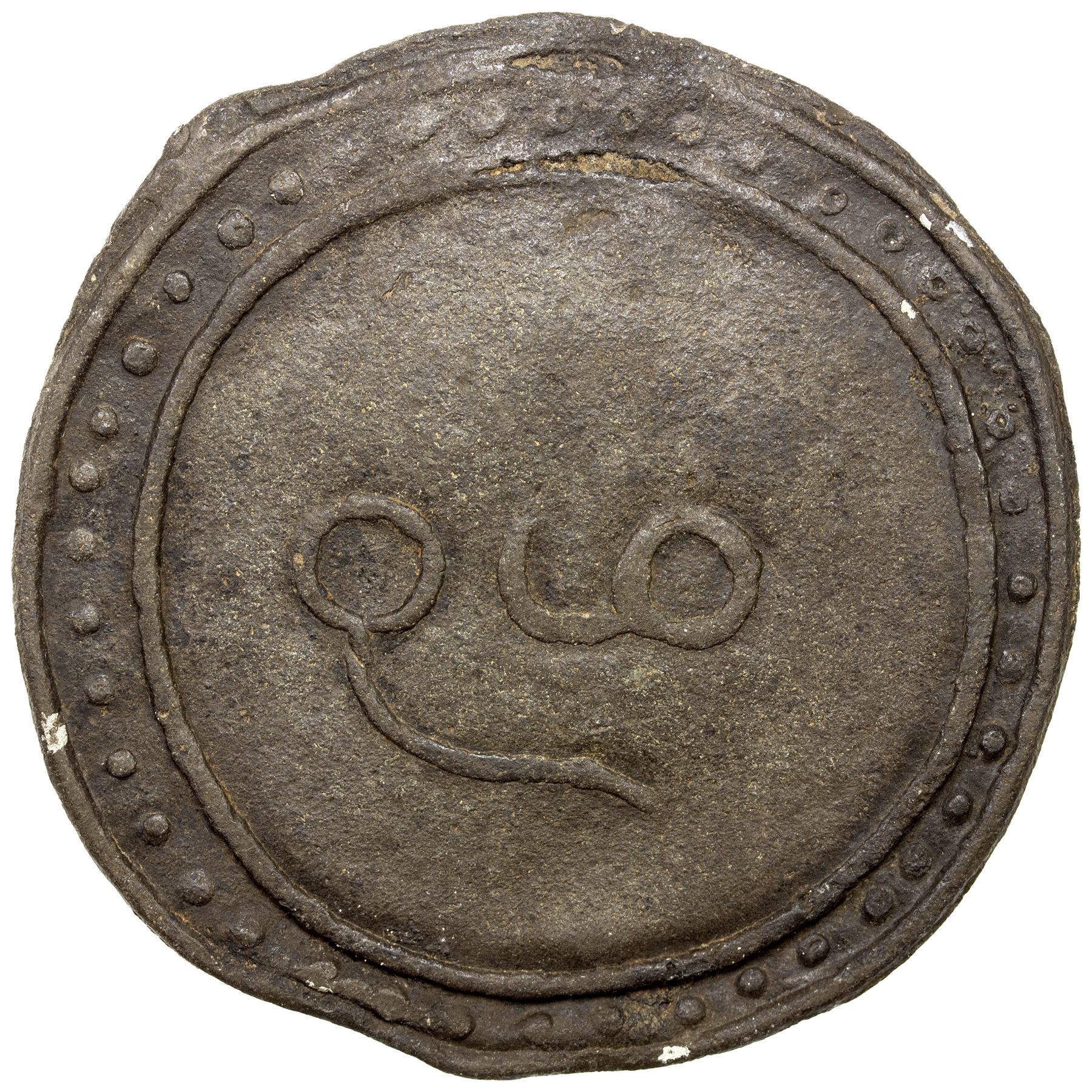 TENASSERIM-PEGU: Anonymous, 17th-19th century, cast large tin coin (45.69g), Robinson-, Phayre-Plate III.3 (obverse only), 68.5mm; mythical hintha bird facing right, with long tail rising above, extra feathers along its back, and holding an 8-leaf branch in its beak // Burmese ta-weh (for the city of Dawei in Tenasserim Province), broad casting, EF, RR. The reverse was published and its legend read by Elizabeth Moore, "Dawei Buddhist culture: a hybrid borderland," in Myanmar Historical Research Journal, vol. 21 (June 2011).