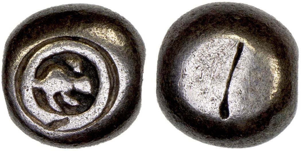THAILAND: KINGDOMS: AR fuang (1.31g), before 1782, Mitch--, Krisadaolarn-C506, uncertain pre-Rattanakosin bullet money (namo), hare right within circle, VF, RR.