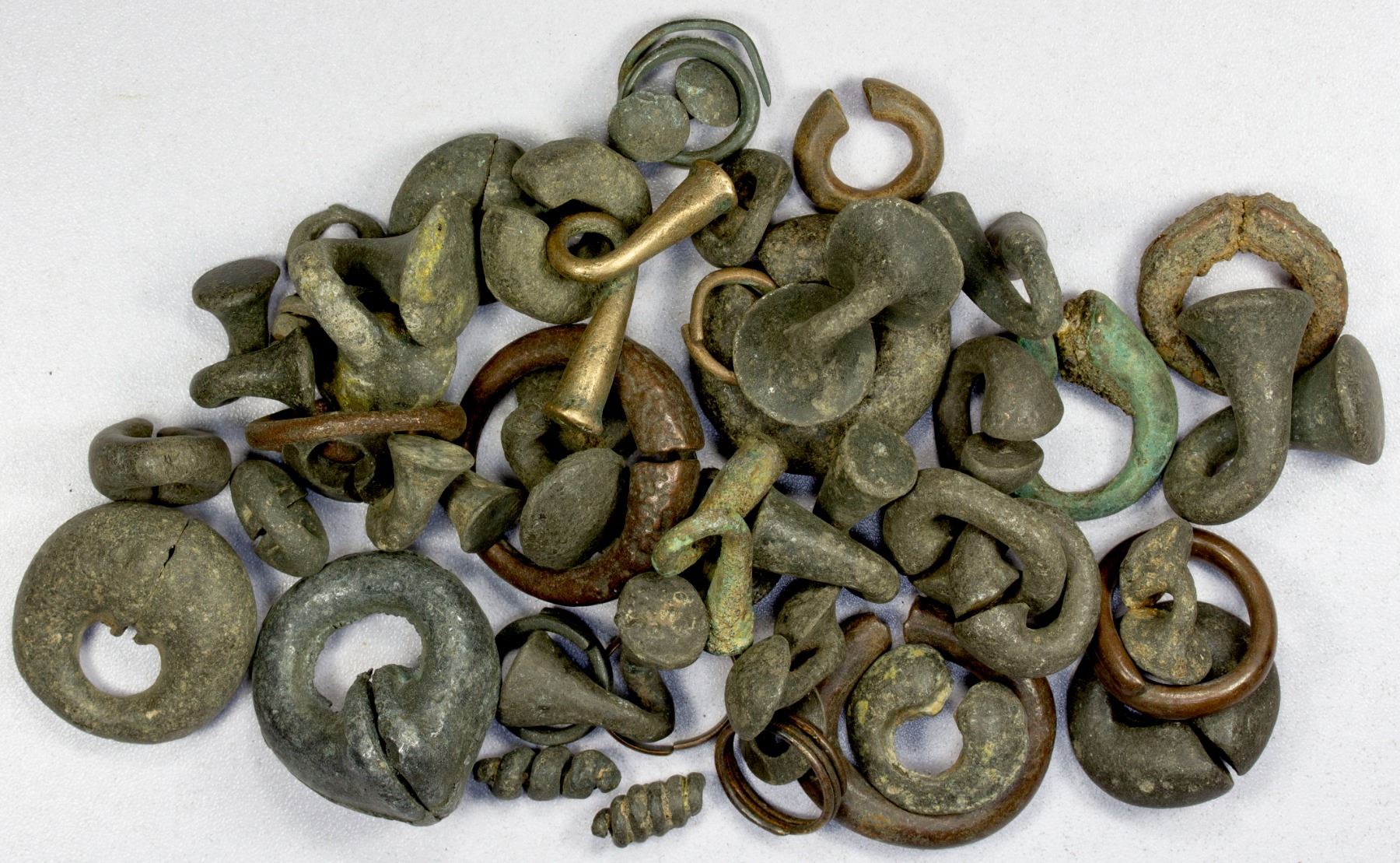 THAILAND - KINGDOMS: Lavapura, ca. 1050-1350, LOT of 48 ring money, also known in Malay as keloh or kelok, most in lead alloy with some in copper and brass, various shapes, with roughly a third bulbous end rings (cf. Mitch-2610-16), another third Zhenlifu (Suvarnapura) rings, and the remainder as plain rings and coils; a few quite large, the heaviest 85g; most in average conditions, most with some level of oxidation and porosity; retail value $500, lot of 48 pieces, ex Jürgen M. Wilmes Collection.