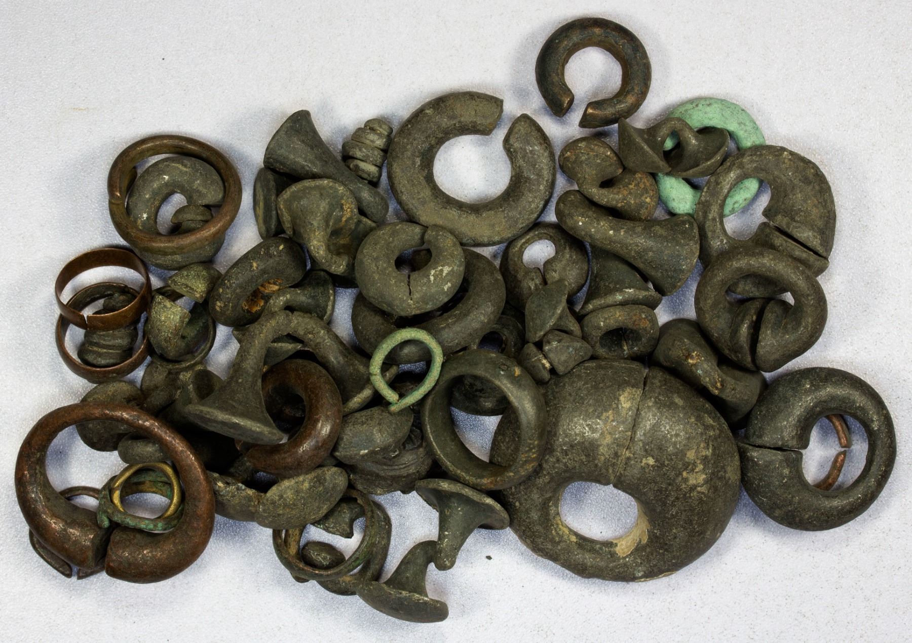 THAILAND - KINGDOMS: Lavapura, ca. 1050-1350, LOT of 49 ring money, also known in Malay as keloh or kelok, most in lead alloy with some in copper and brass, various shapes, with roughly a third bulbous end rings (cf. Mitch-2610-16), another third Zhenlifu (Suvarnapura) rings, and the remainder as plain rings and coils; a few quite large, the heaviest 124g; most in average conditions, most with some level of oxidation and porosity; retail value $500, lot of 49 pieces, ex Jürgen M. Wilmes Collection.