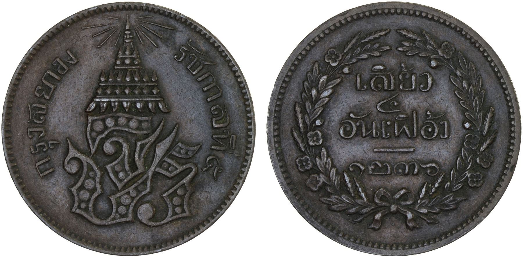 THAILAND: Rama V, 1868-1880, AE 2 att, CS1236 (1874), Choice XF