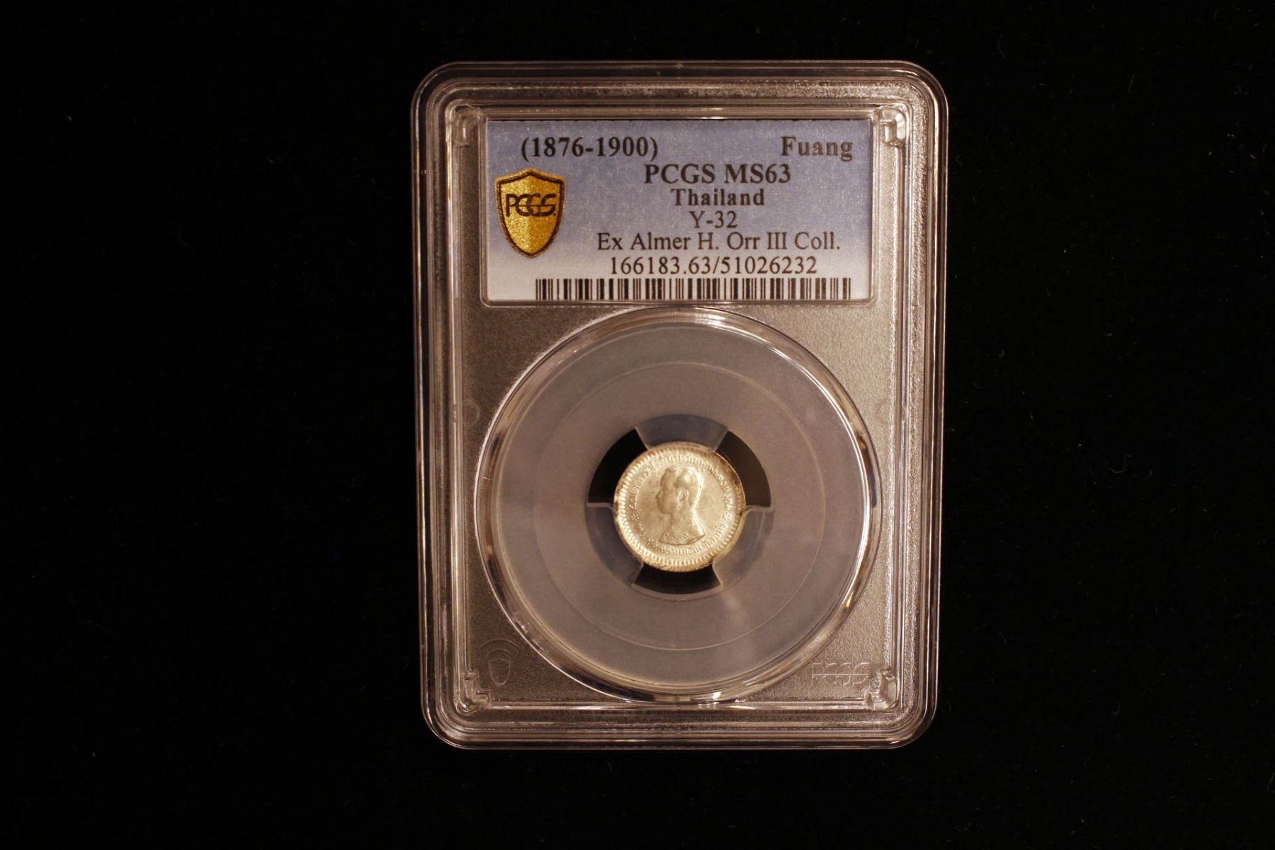 THAILAND: Rama V, 1868-1910, AR 1/8 baht (fuang), ND (1876-1900), Y-32, a lovely example, PCGS graded MS63, ex Almer H. Orr III Collection.