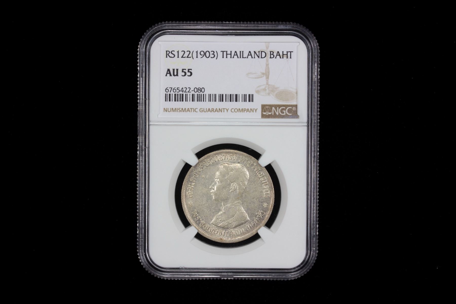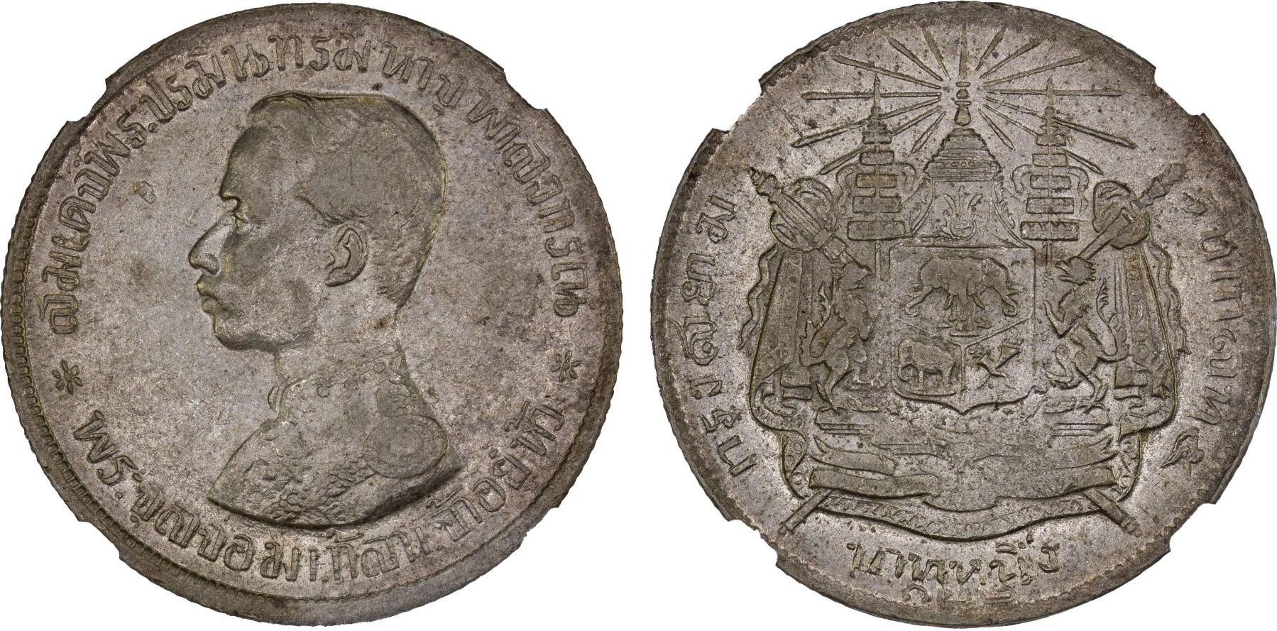 THAILAND: Rama V, 1868-1910, AR baht, RS122 (1903), Y-34a, beautiful luster on reverse, NGC graded AU55.