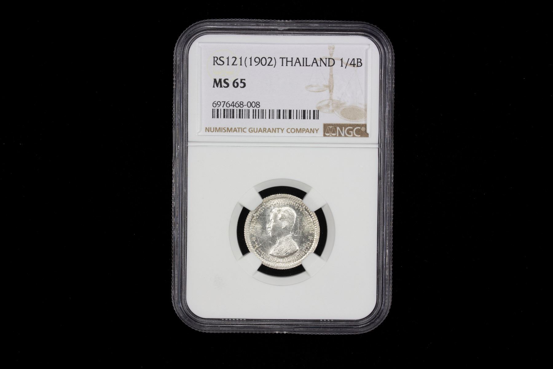 THAILAND: Rama V, 1868-1910, AR salung (1/4 baht), RS121 (1902), Y-33a, a superb lustrous mint state example! NGC graded MS65. Only three graded higher at NGC.