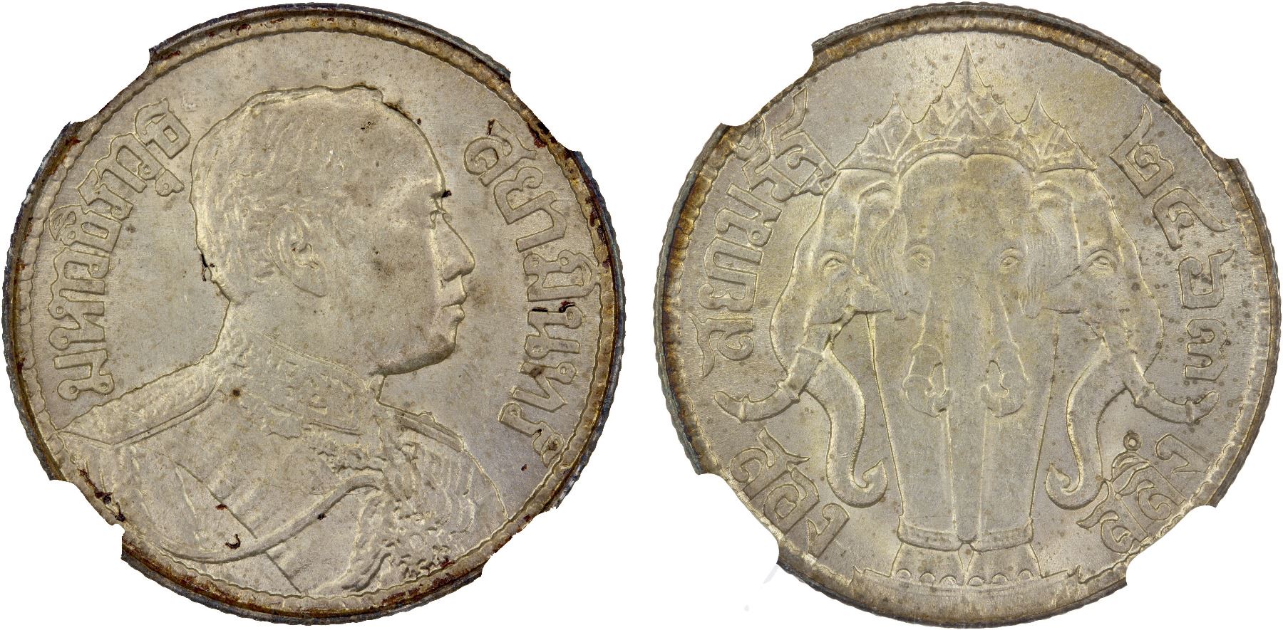 THAILAND: Rama VI, 1910-1925, AR 2 salung (1/2 baht), BE2463 (1920), Y-44a, Elephants, NGC graded MS64.