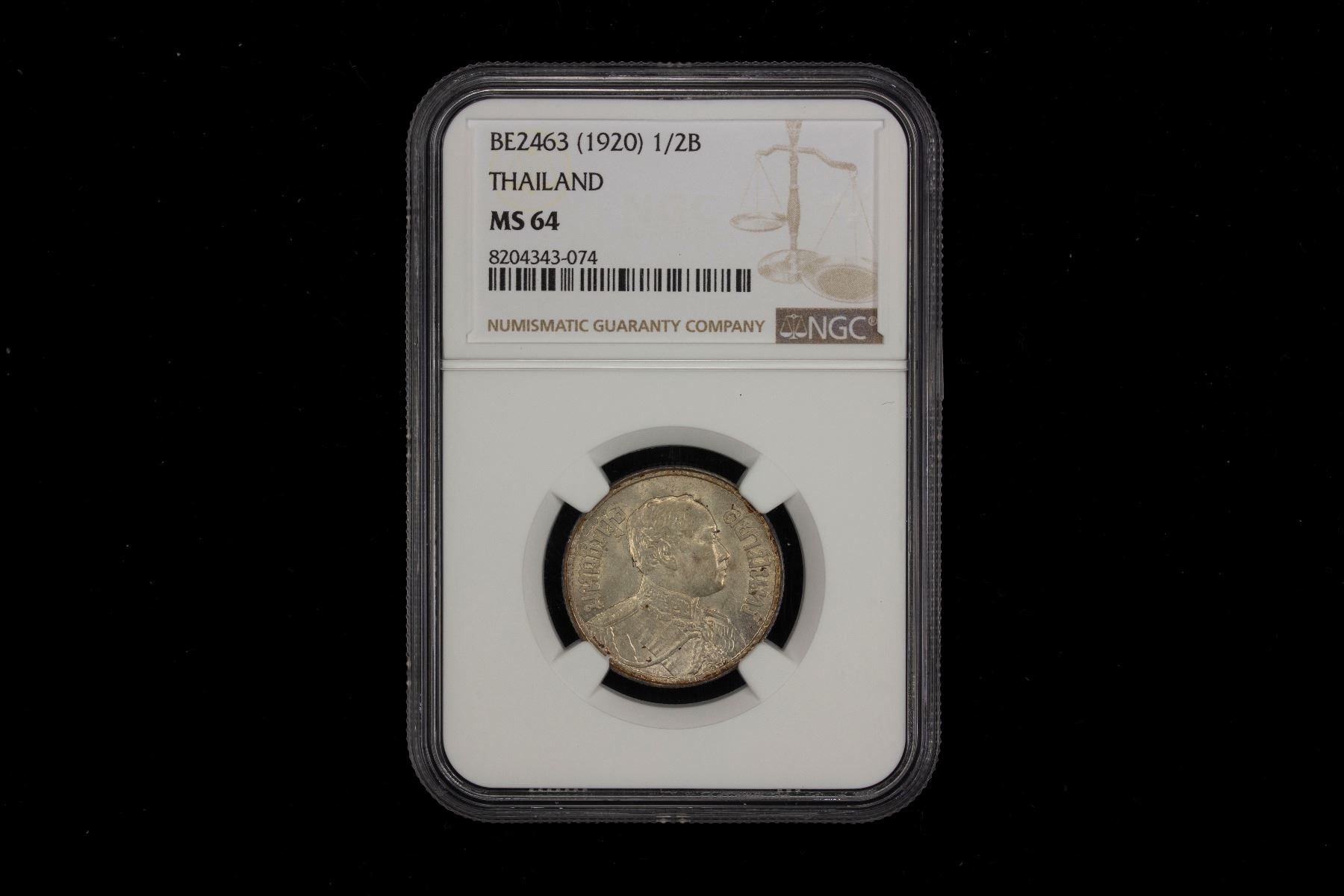 THAILAND: Rama VI, 1910-1925, AR 2 salung (1/2 baht), BE2463 (1920), NGC MS64