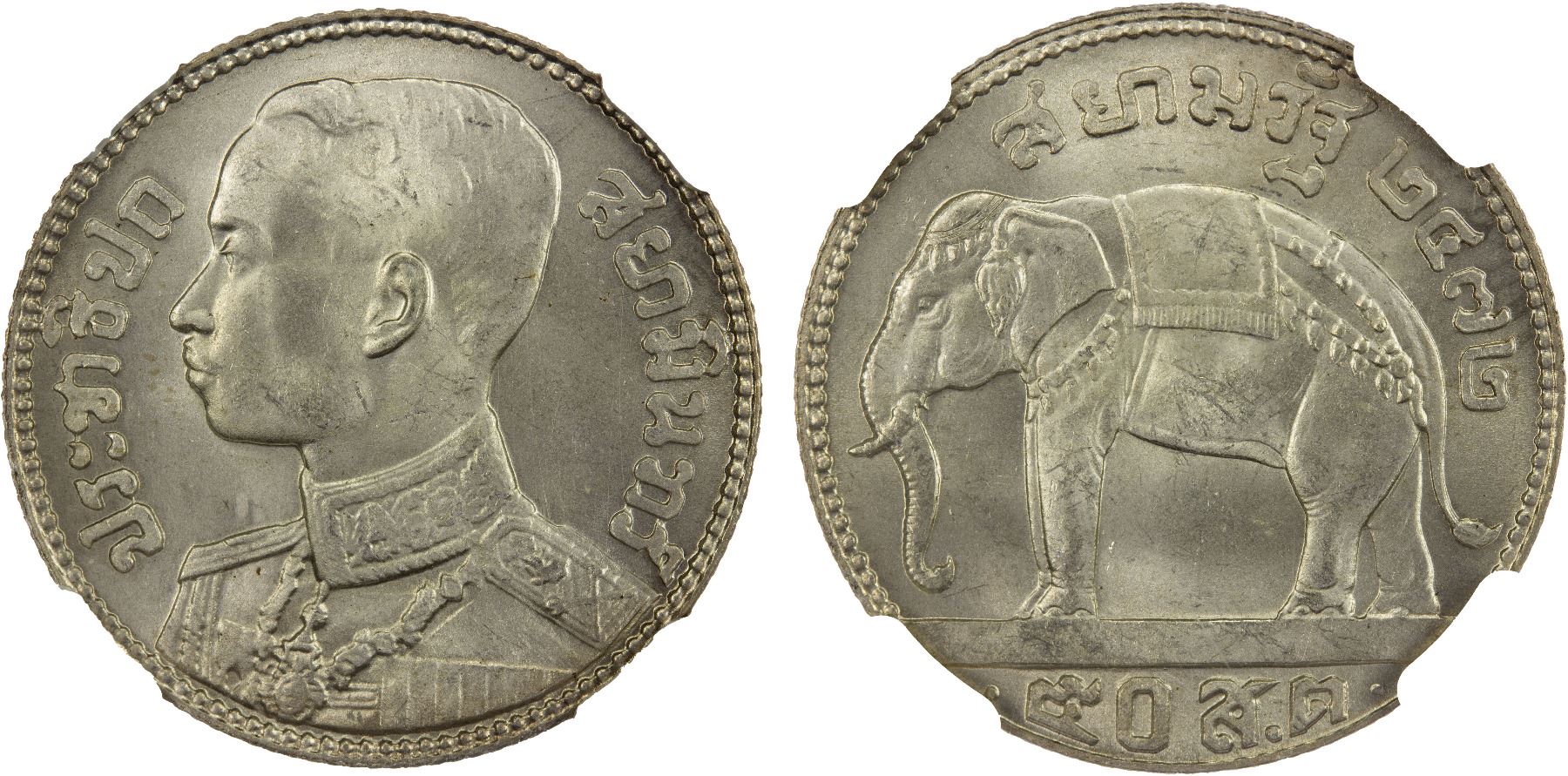 THAILAND: Rama VII, 1925-1935, AR 50 satang (1/2 baht), BE2472 (1929), NGC MS65