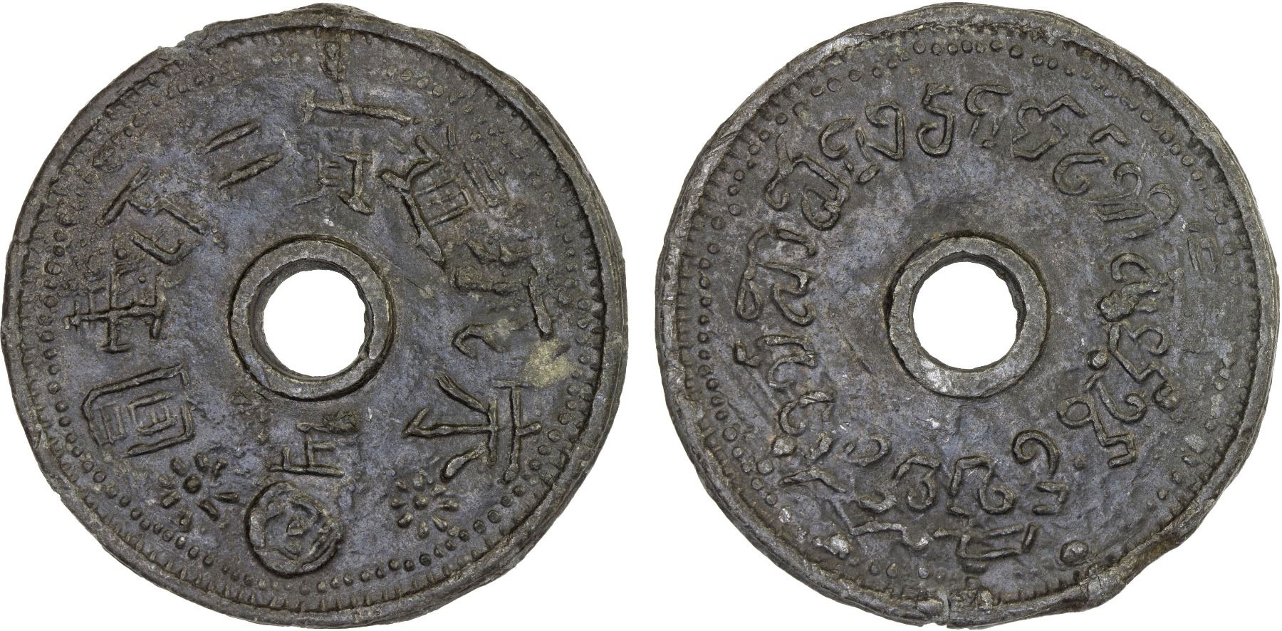 SINGGORA: tin 1/2 cent (7.36g), ND (late 19th century), Prid-206, obverse in Chinese, reverse in Thai, both of which translate to "Singgora currency, each two hundred one dollar", attractive glossy patina, a lovely example for this type, XF, RR.