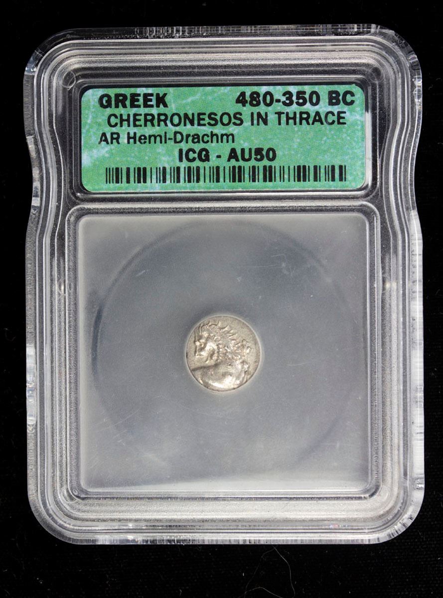 THRACE: Chersonesos, AR hemidrachm, ca. 480-350 BC, lion right looking back // quadripartite incuse square, well struck with bright metal tone, ICG graded AU50.