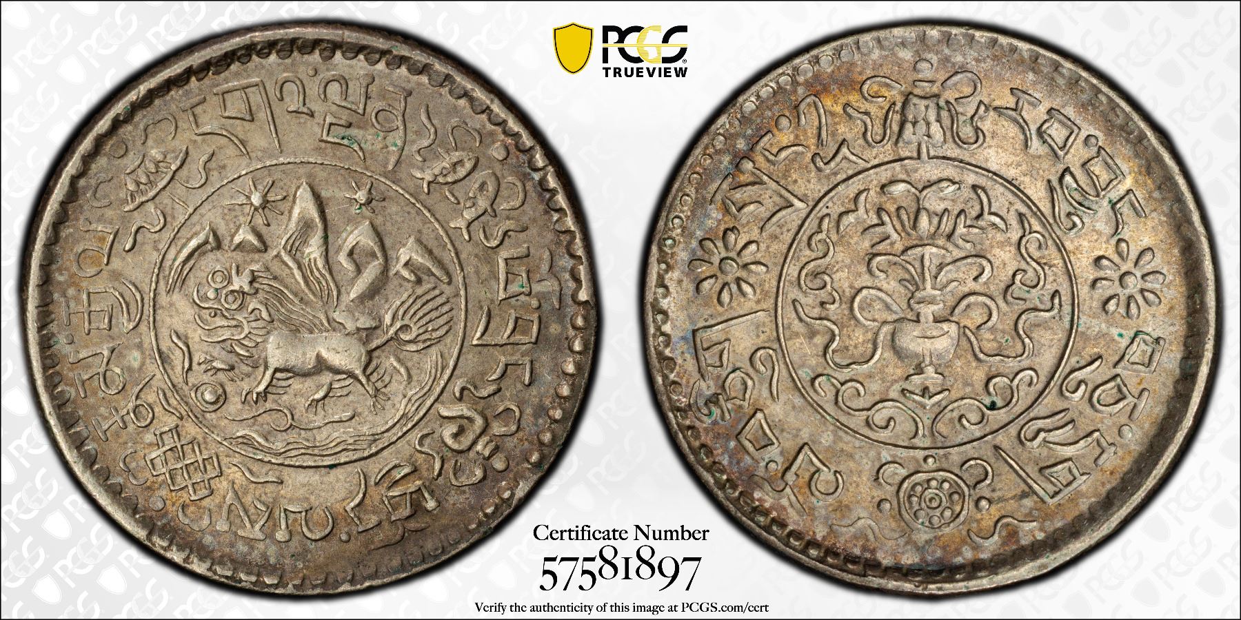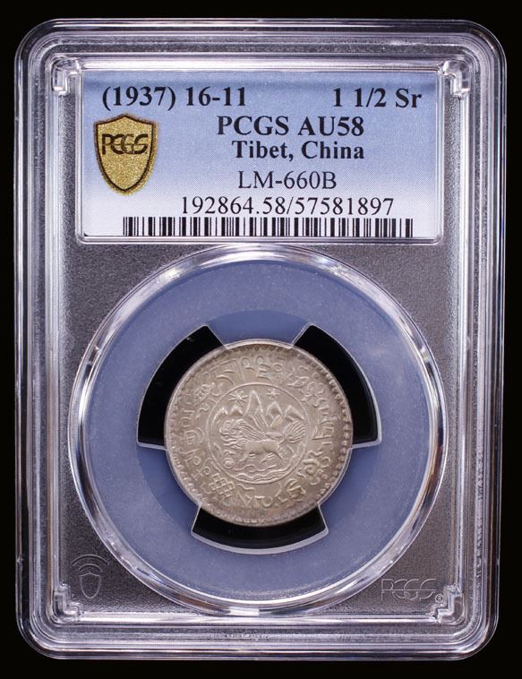 TIBET: AR 1½ srang, BE16-11 (1937), Y-24, L&M-660, Autonomous Tibetan issue, an attractive nearly mint state example, PCGS graded AU58.