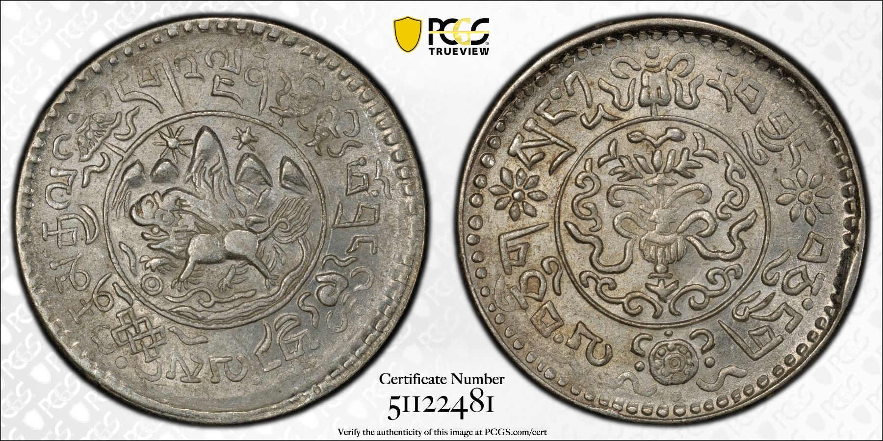 TIBET: AR 1½ srang, BE16-11 (1937), Y-24, L&M-660, Autonomous Tibetan issue, snow lion facing left in front of Mount Kailash with two suns in the background, a lovely mint state example! PCGS graded MS63.