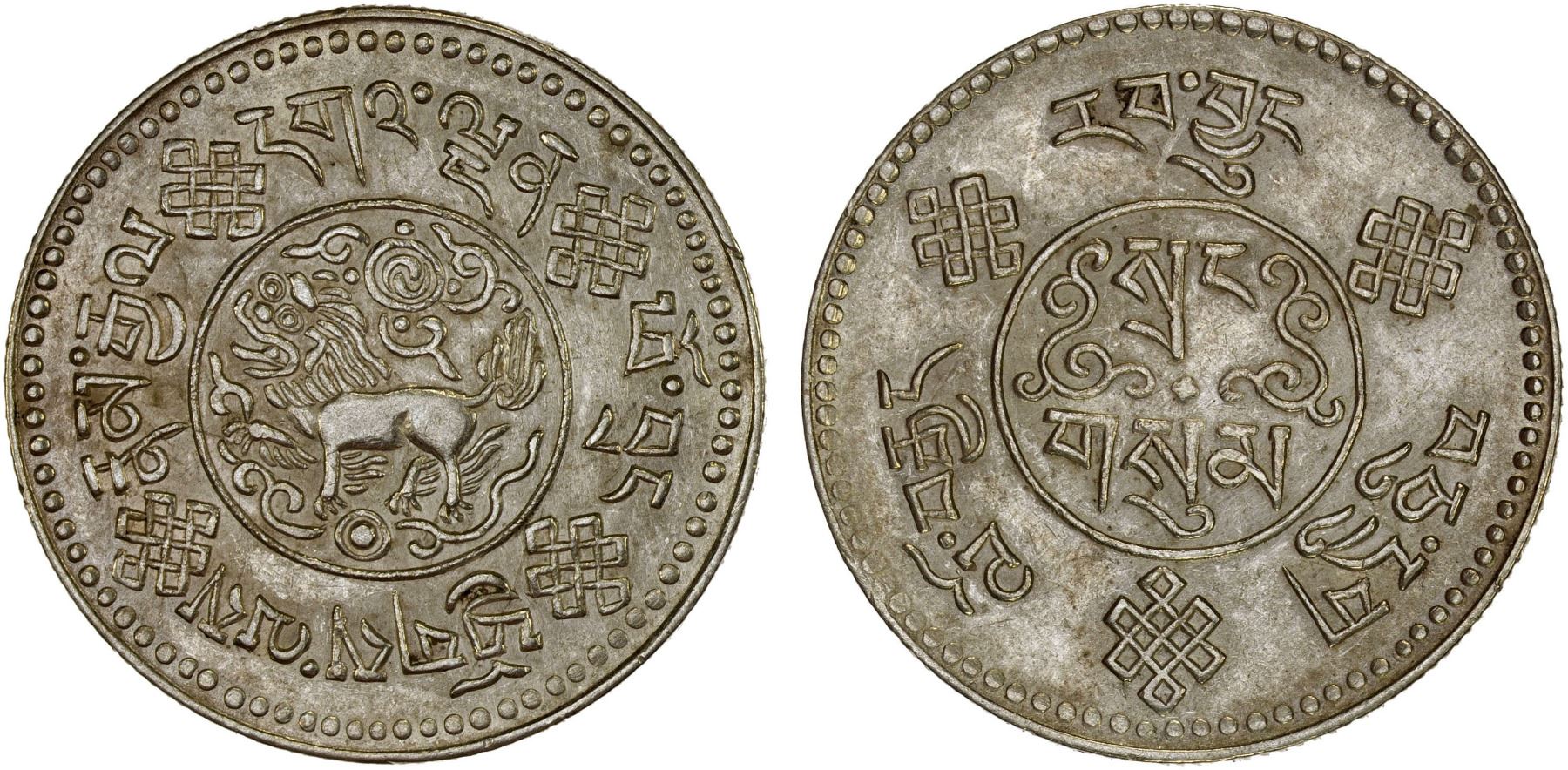 TIBET: AR 3 srang, BE16-8 (1934), Y-25, L&M-659A, Autonomous Tibetan issue, snow lion facing left in center with ornaments above and below, an attractive lustrous state example, AU.