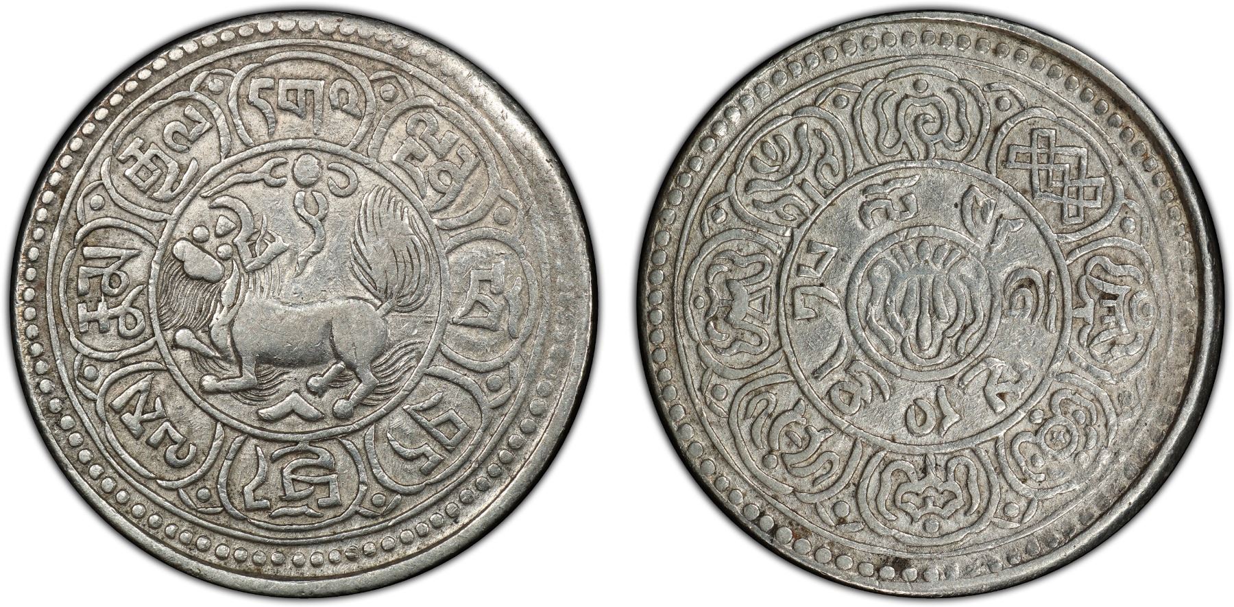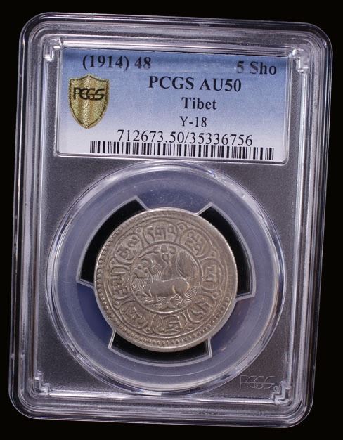 TIBET: AR 5 sho, Dode, BE 15-48 (1914), Y-18, Autonomous Tibetan issue, well struck, scarce type, PCGS graded AU50, ex Heritage Auction 3068 Lot 31116, ex The 1914 Collection.